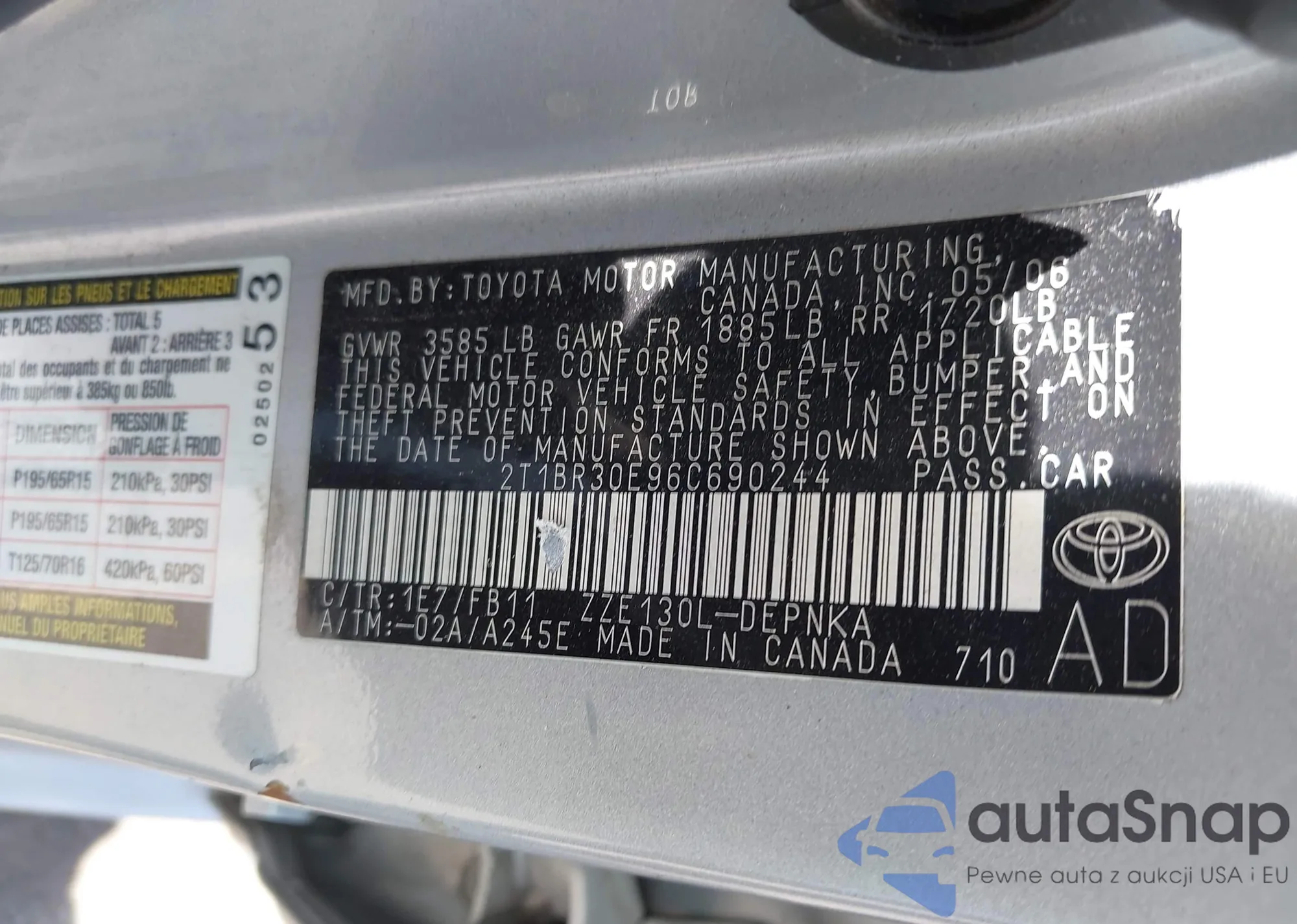 LOT: 42818286 VIN: 2T1BR30E96C690244
