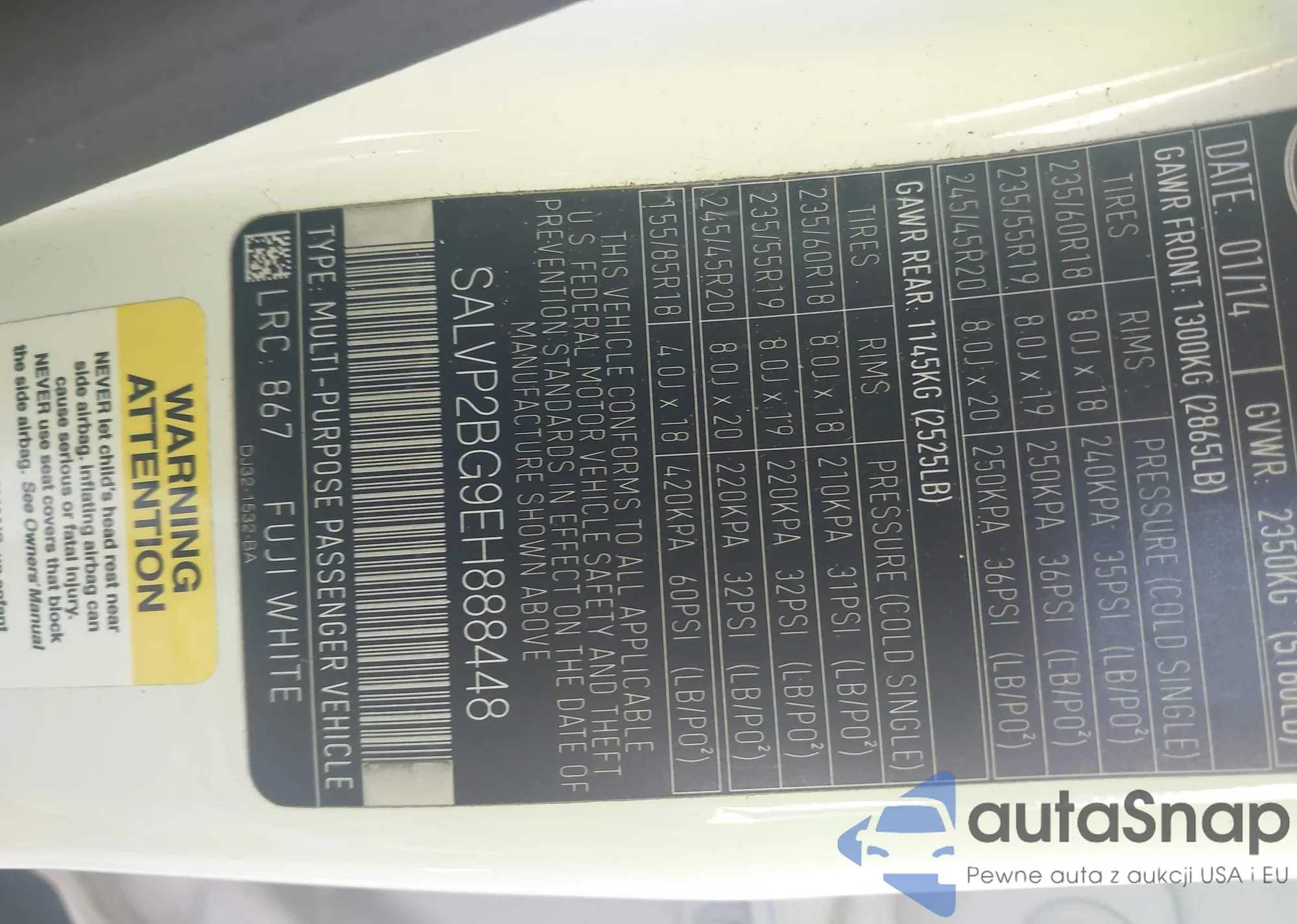 • VIN SALVP2BG9EH888448