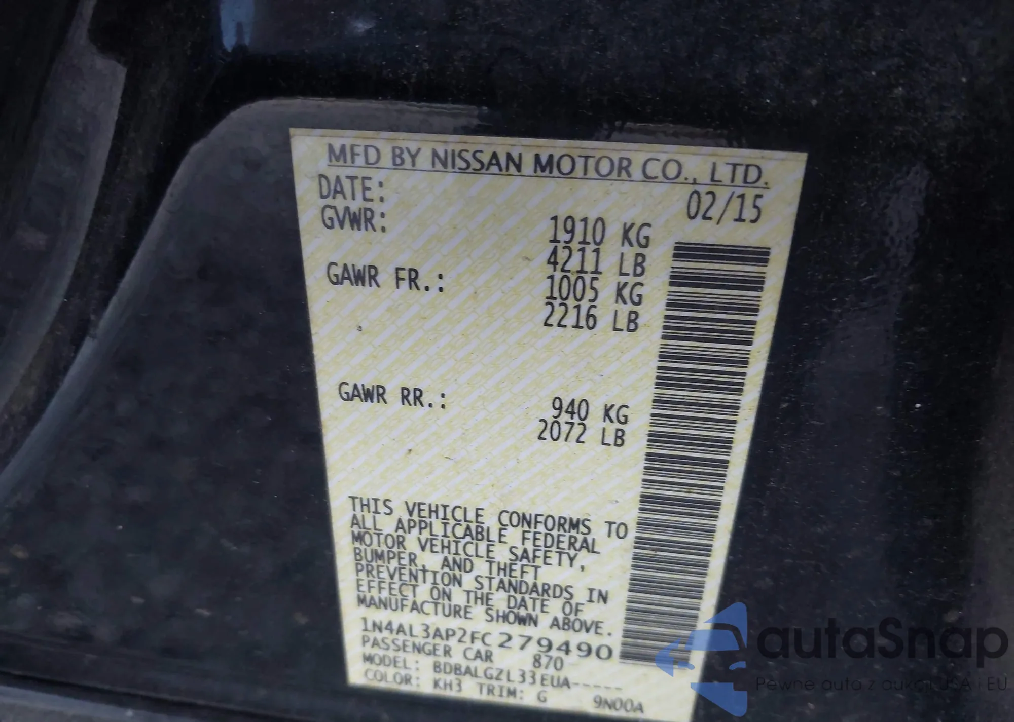 LOT: 42969475 VIN: 5N1AR1NB7BC625261