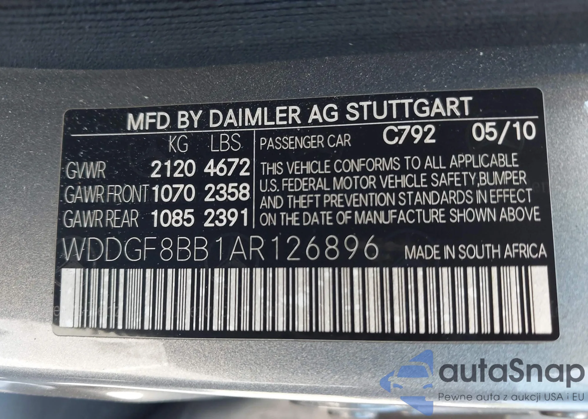 LOT: 43086893 VIN: WDDGF8BB1AR126896