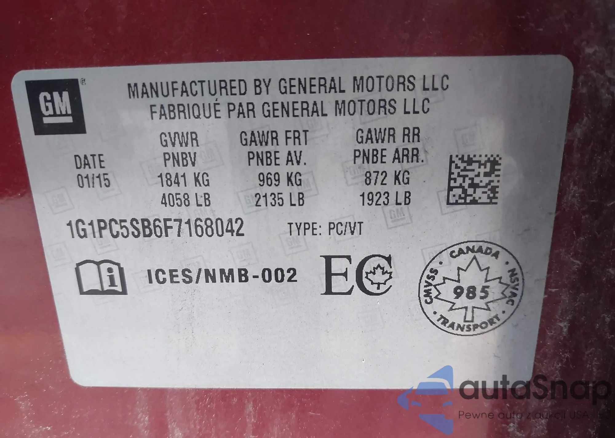 • VIN 1G1JC5SG5D4111718