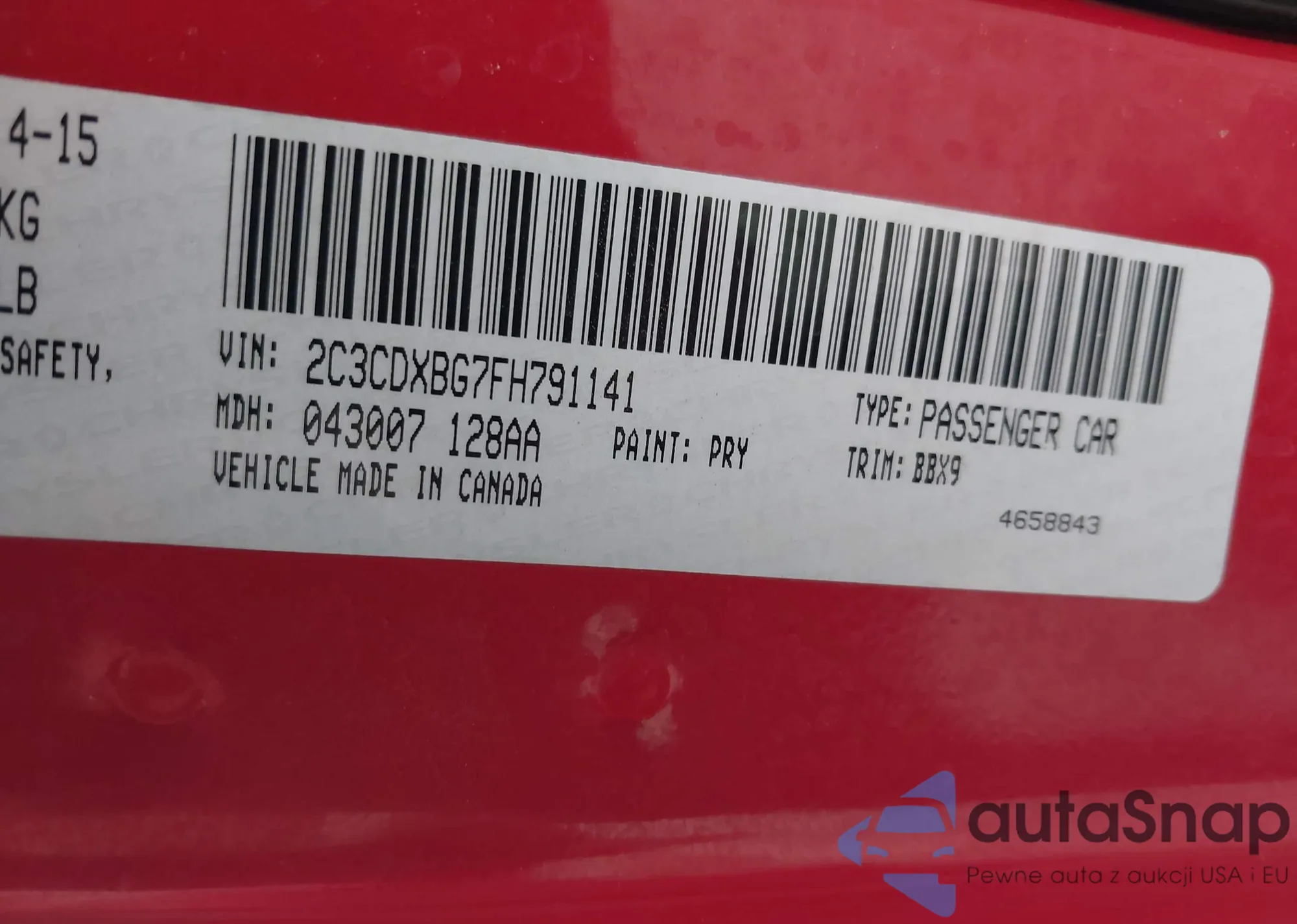 LOT: 43112197 VIN: 2C3CDXBG7FH791141