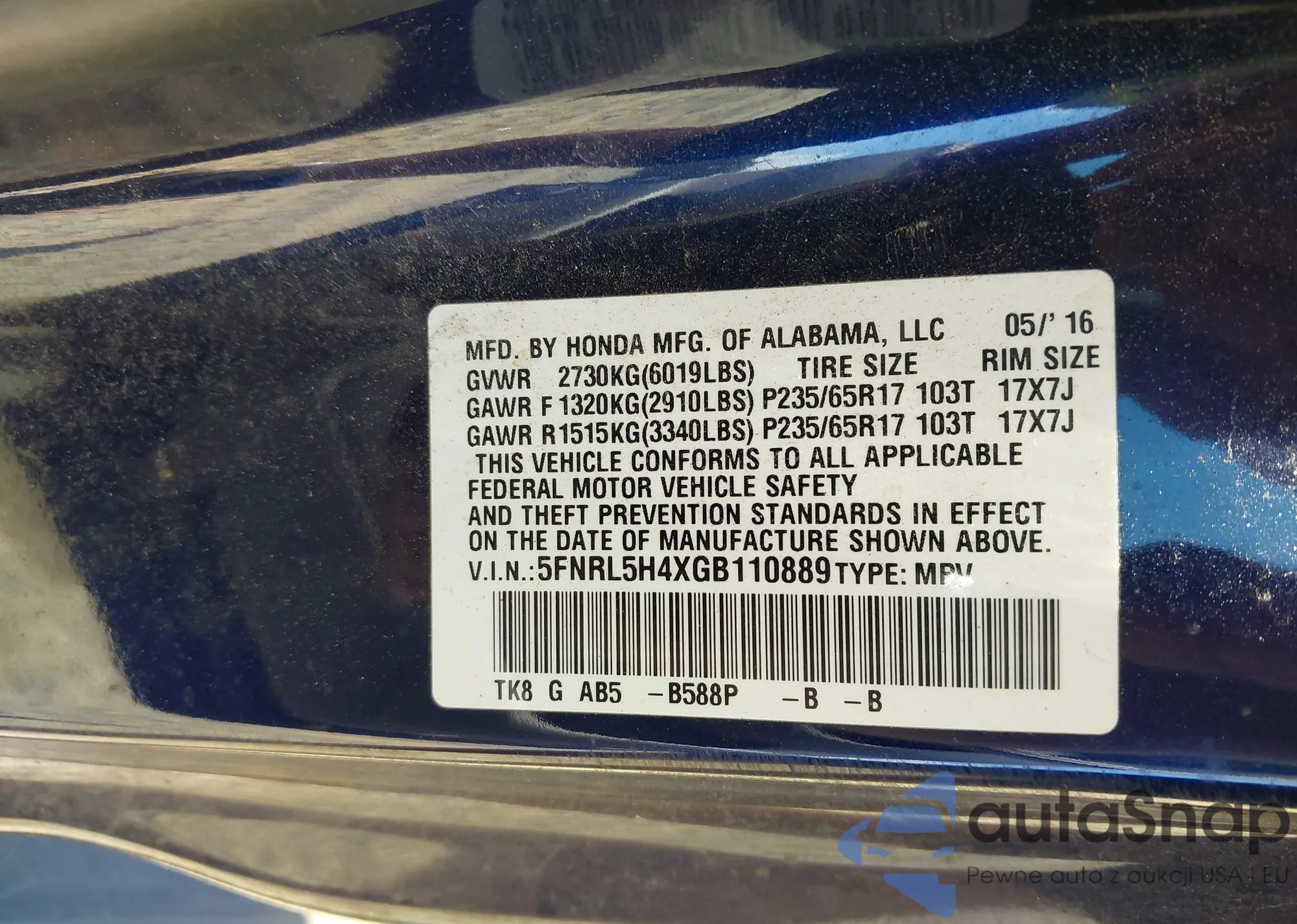 • VIN 5TDKDRBHXRS531947