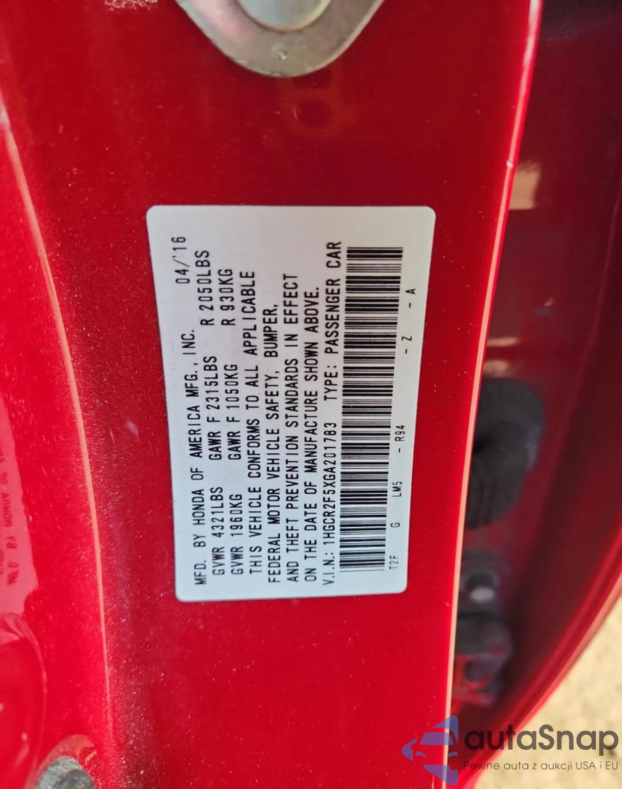 • VIN 1HGCV1F30LA143908