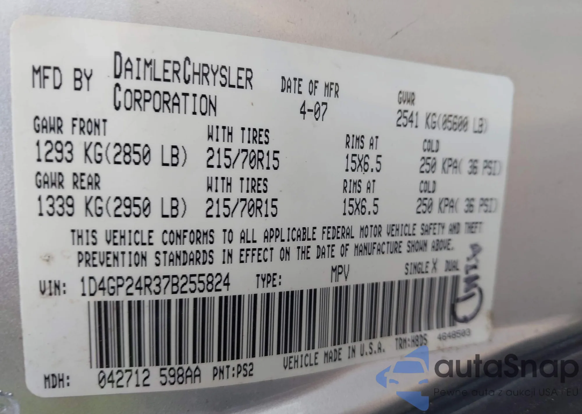 LOT: 43123853 VIN: 1D4GP24R37B255824