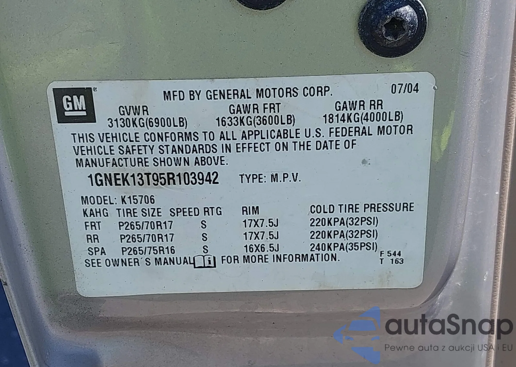• VIN 1FMYU03137KB61562