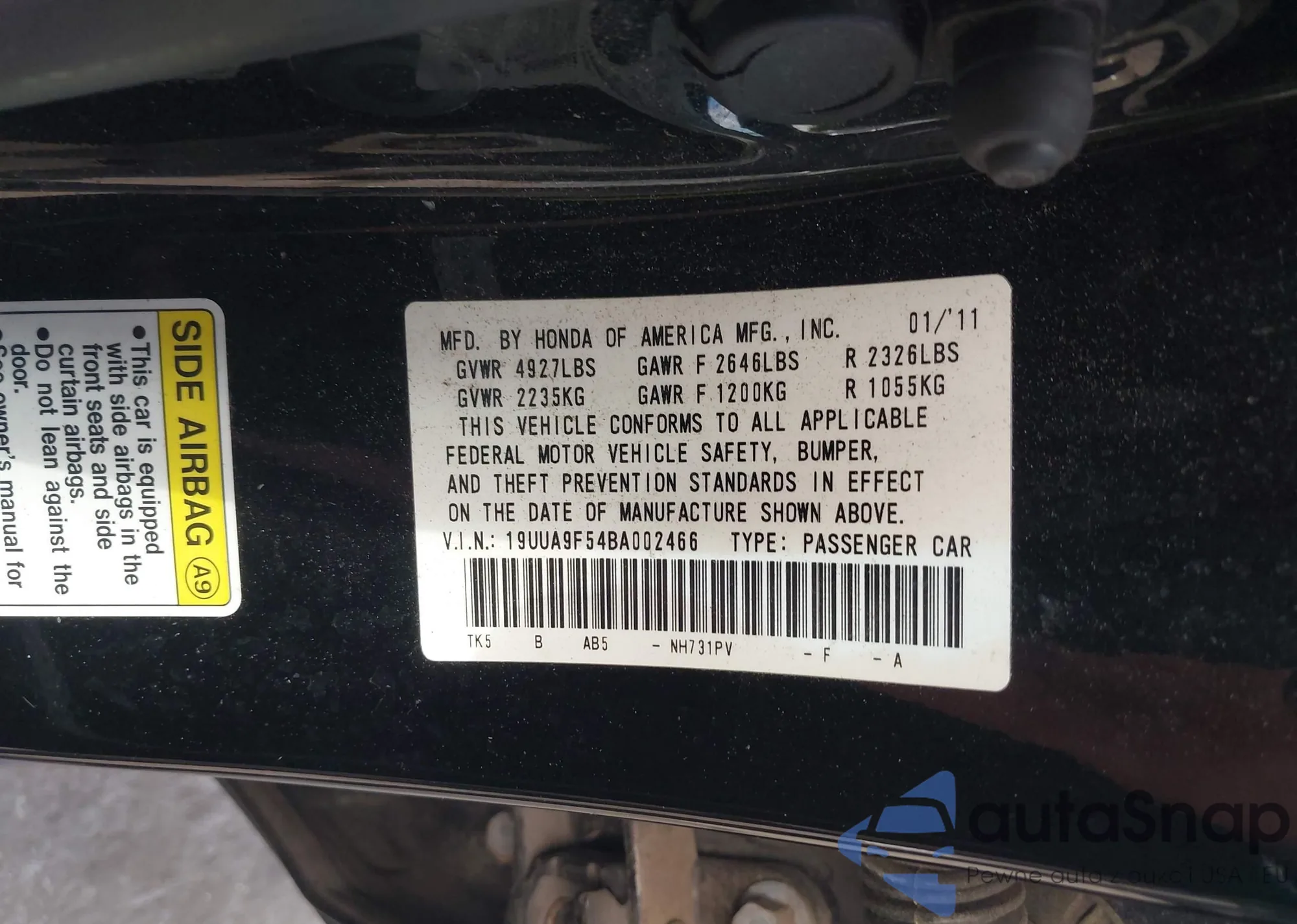 • VIN 19UUA9F54BA002466