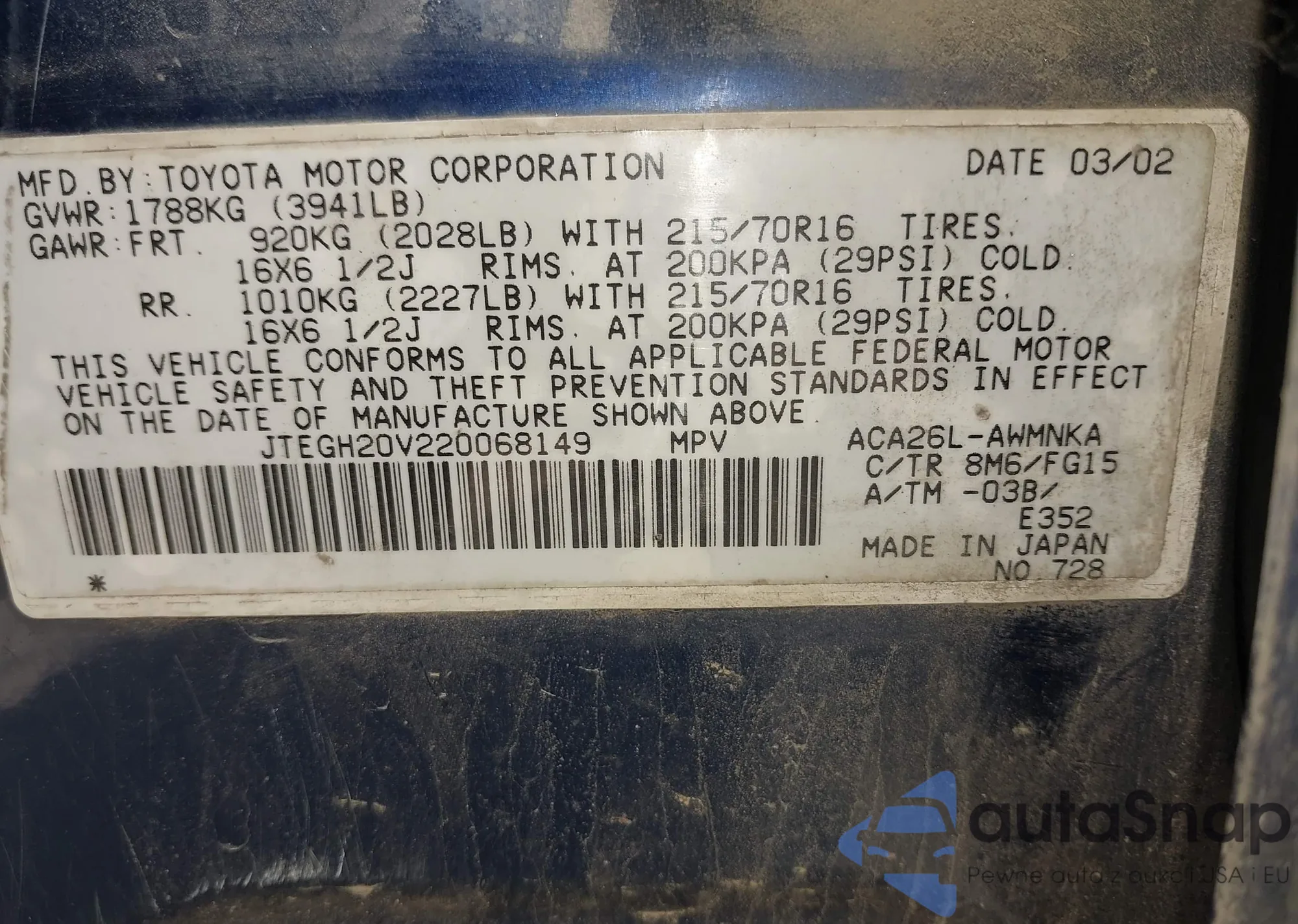 • VIN JTEGH20V220068149