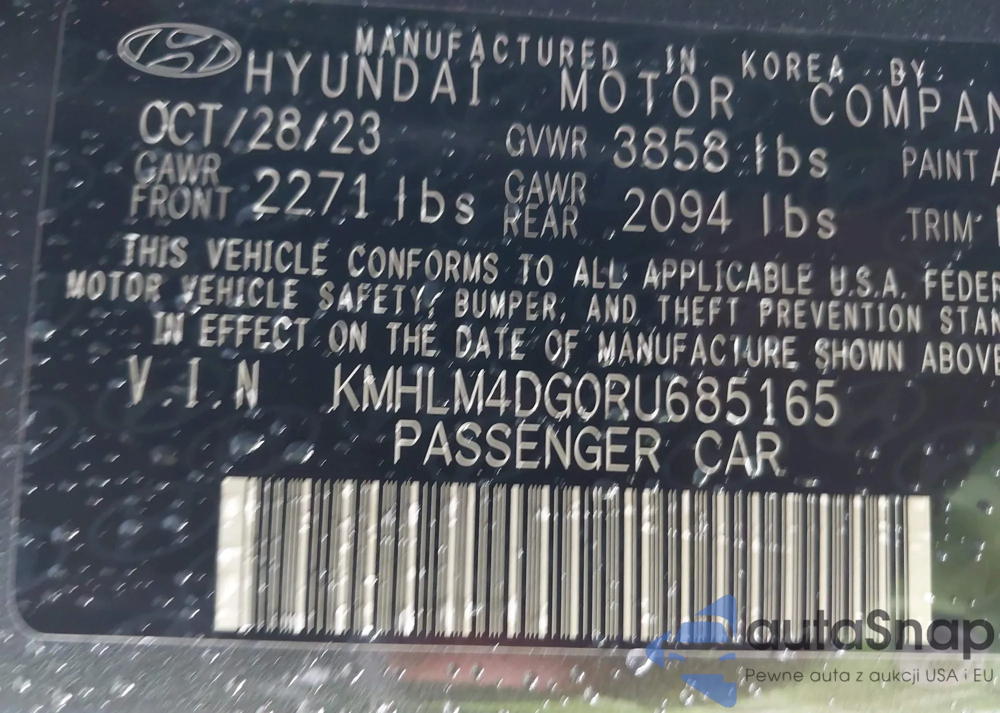 LOT: 42344774 VIN: KMHLM4DG0RU685165