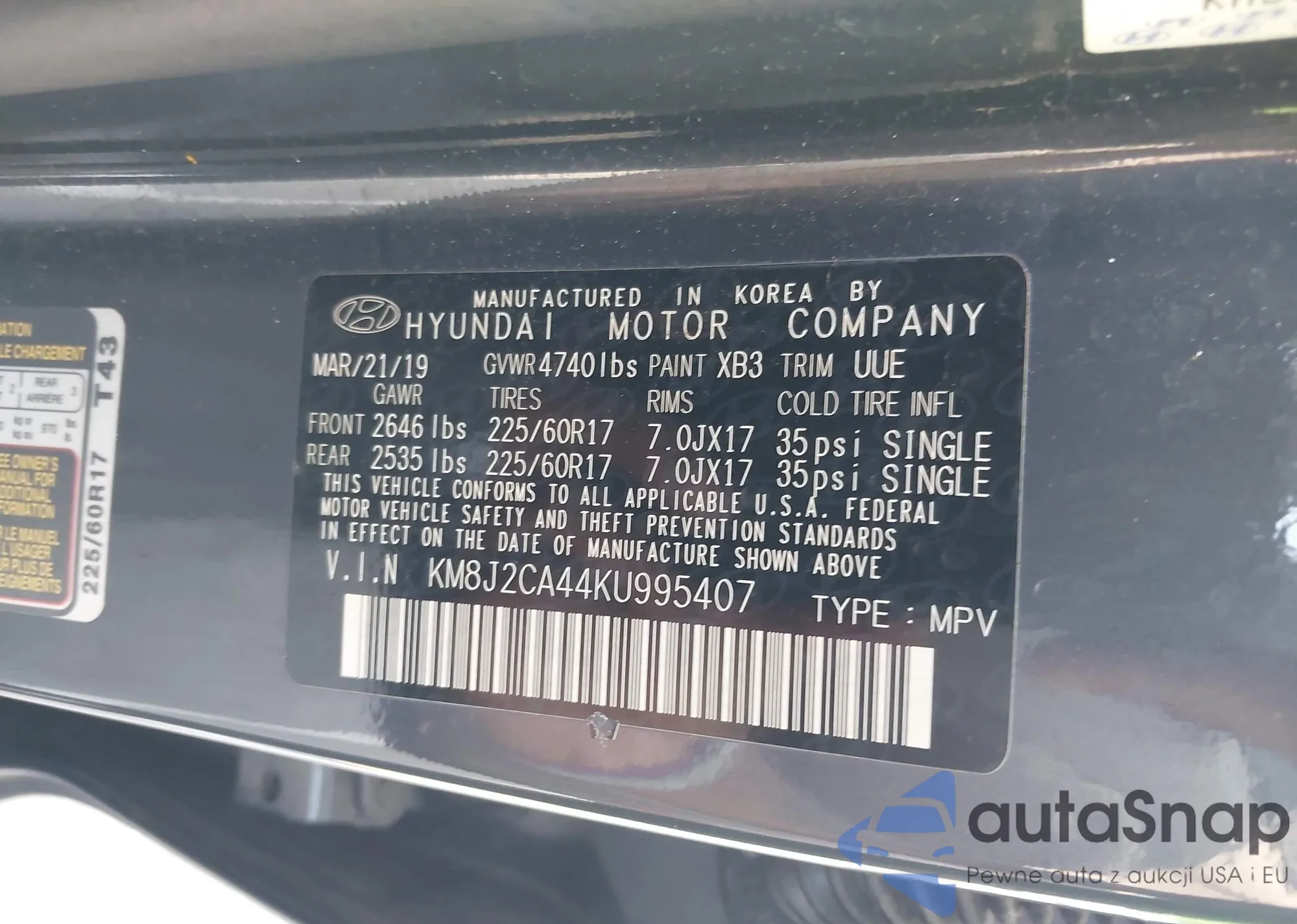 • VIN KM8J2CA44KU995407