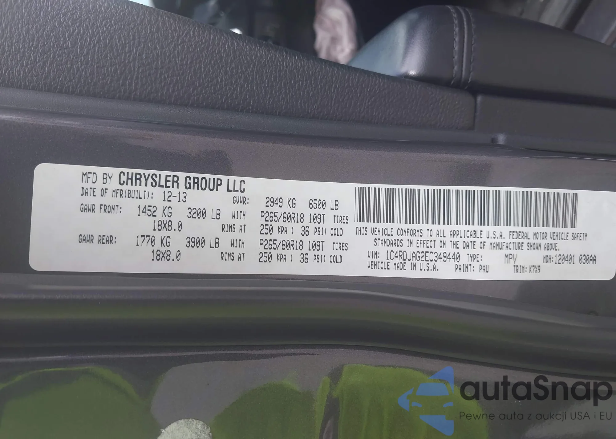 • VIN 1C4RDJAG2EC349440