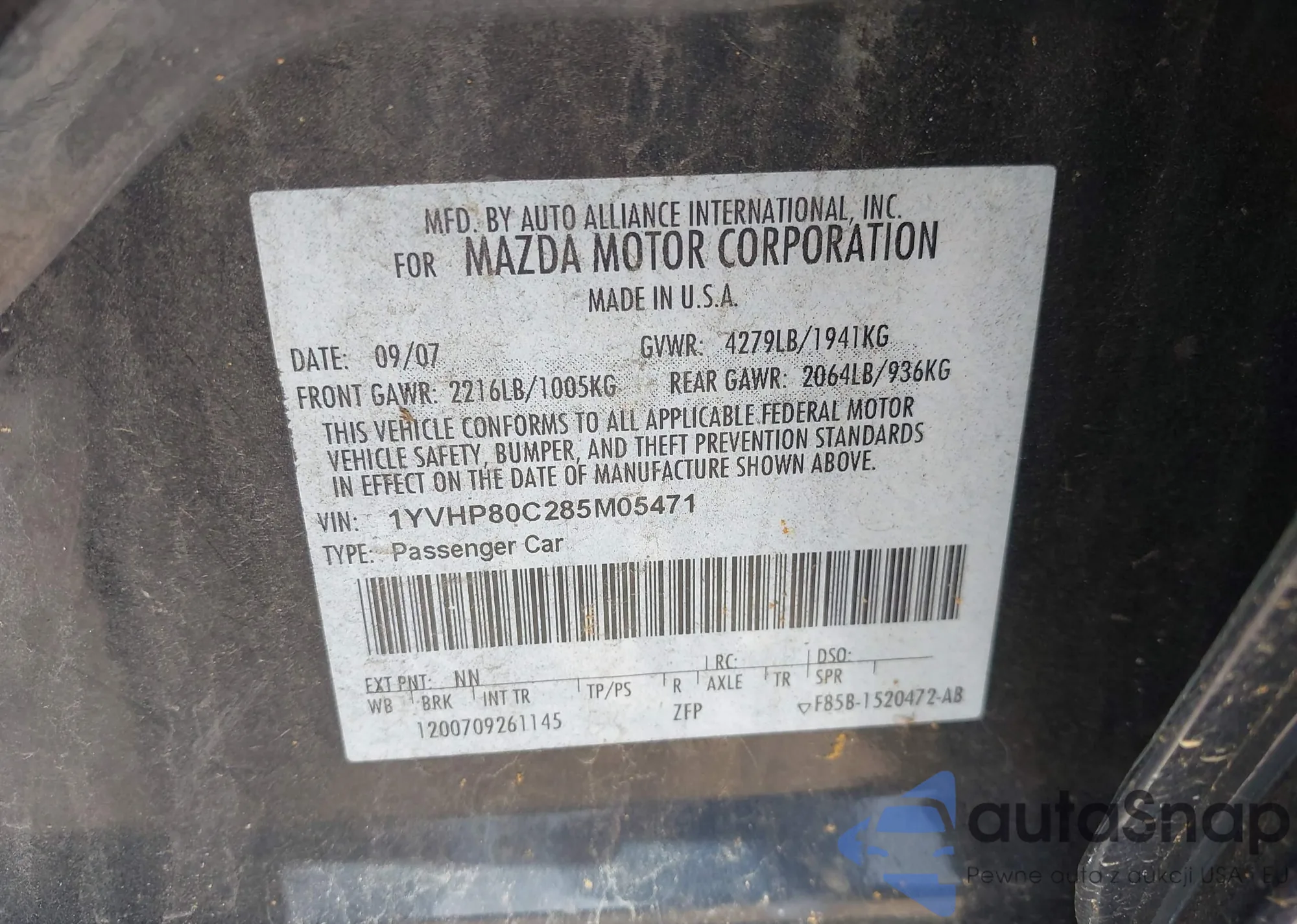 LOT: 43025430 VIN: 1YVHP80C285M05471