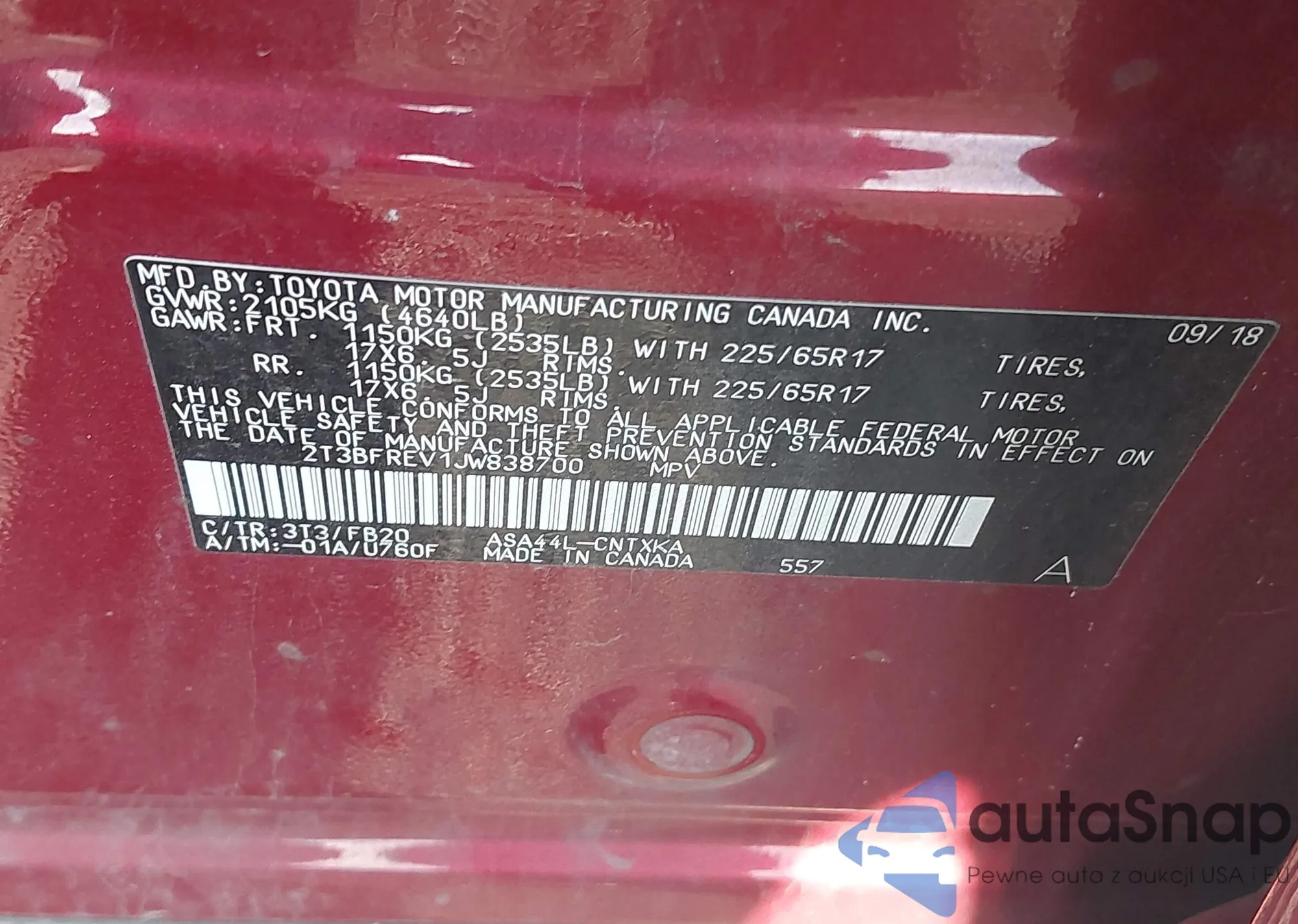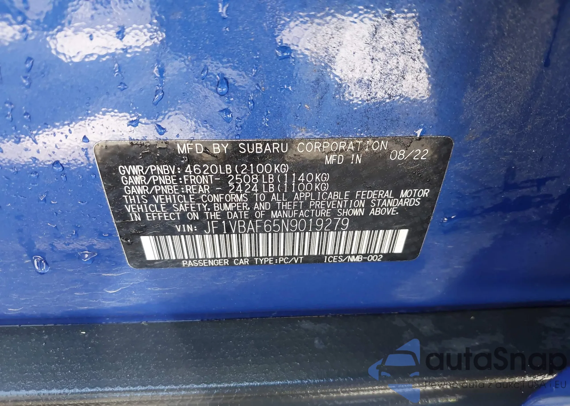 LOT: 43062229 VIN: JF1VBAF65N9019279