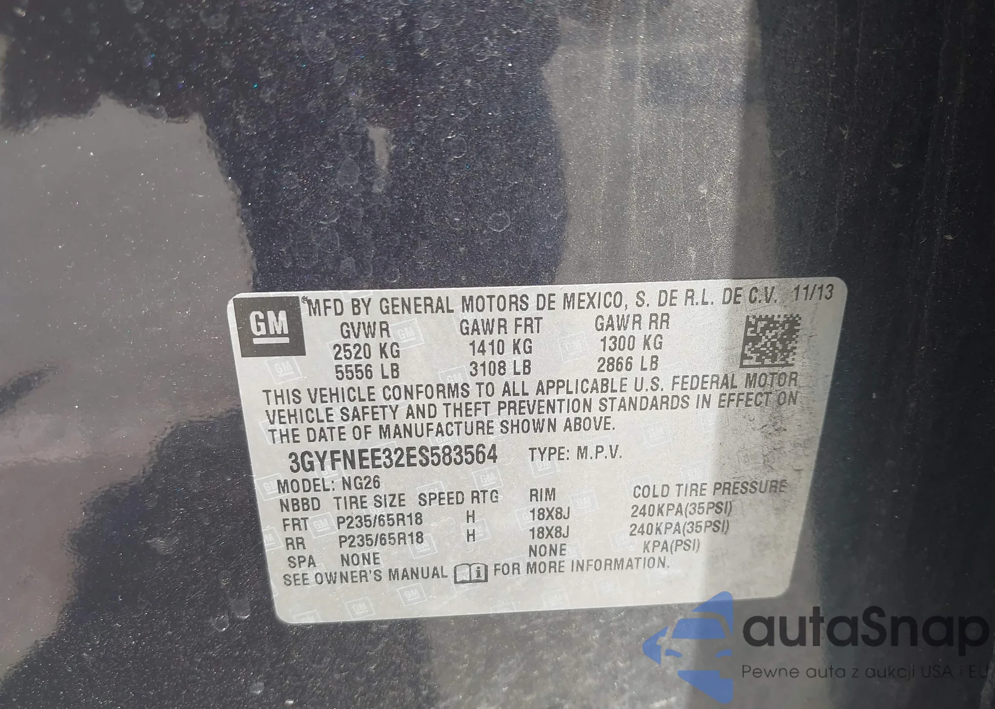 • VIN 3GYFNEE32ES583564