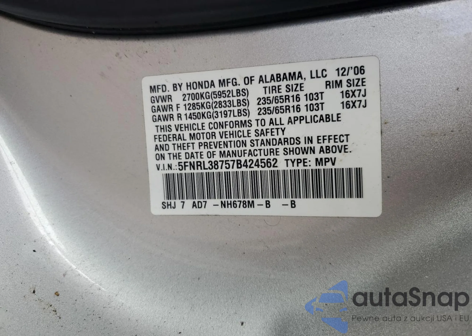 LOT: 50913435 VIN: 1YVHP84C765M04338