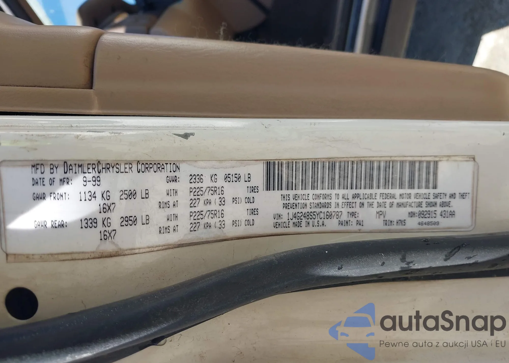 • VIN 1J4G248S5YC160787