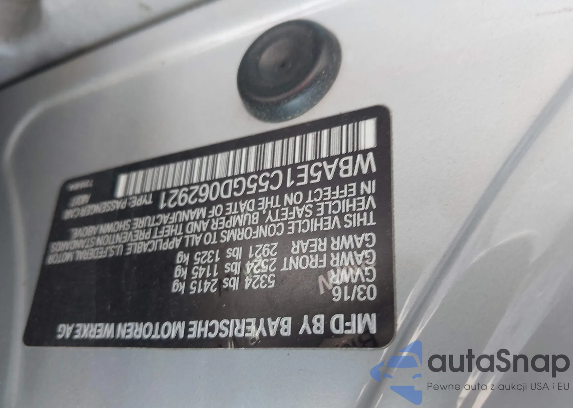 • VIN WBA5E1C55GD062921
