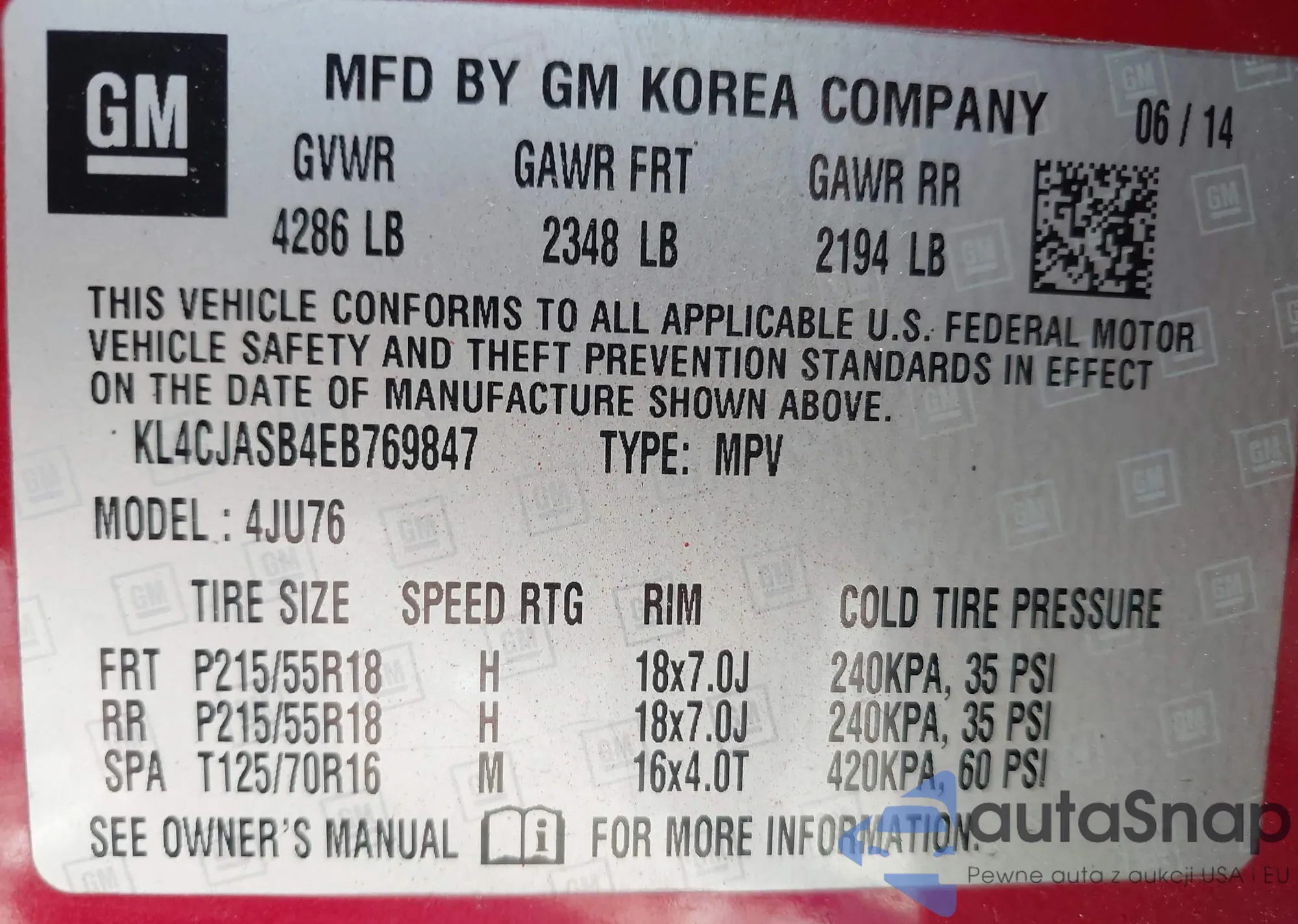 • VIN KL4CJASB4EB769847
