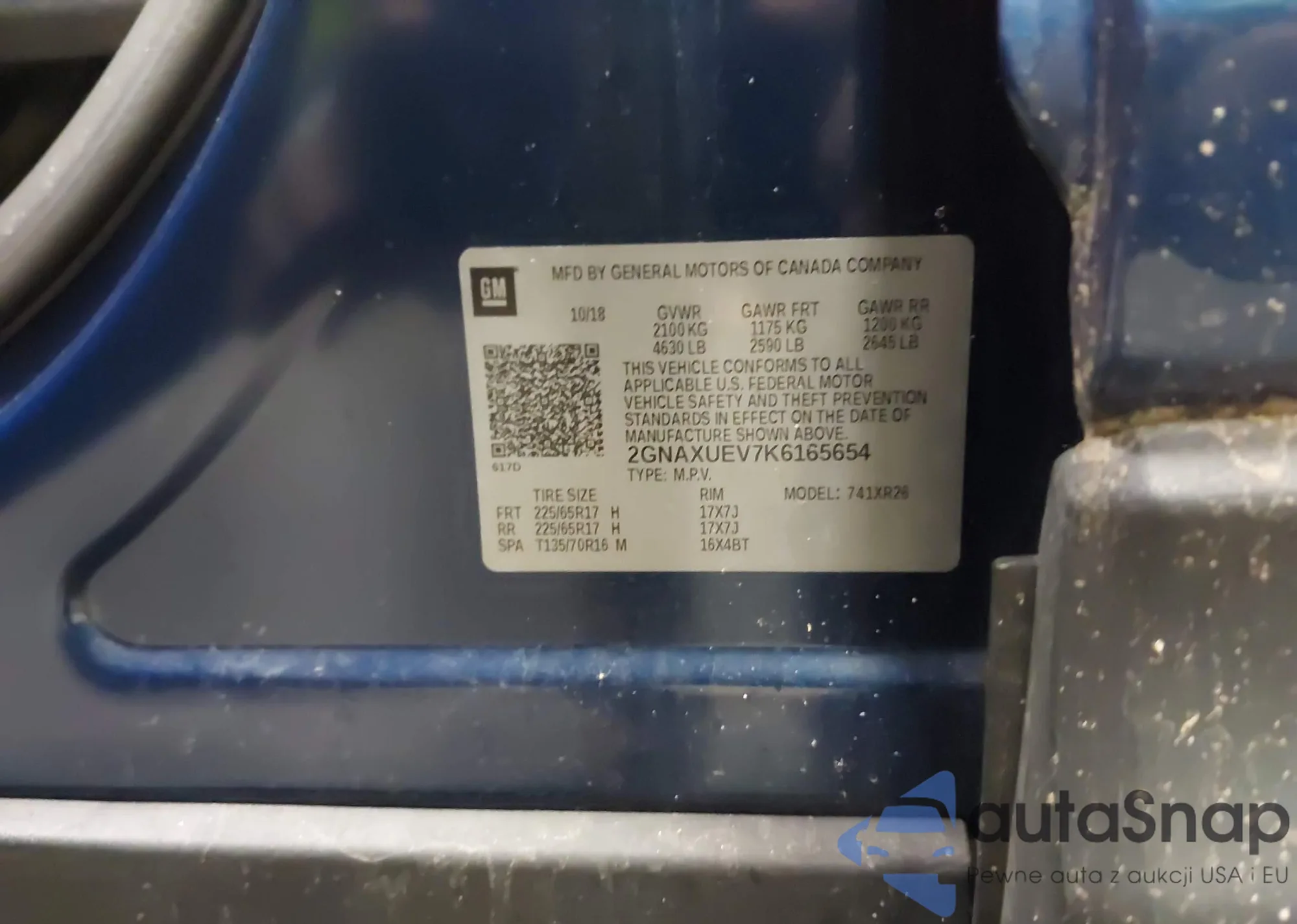 • VIN 2GNAXUEV7K6165654