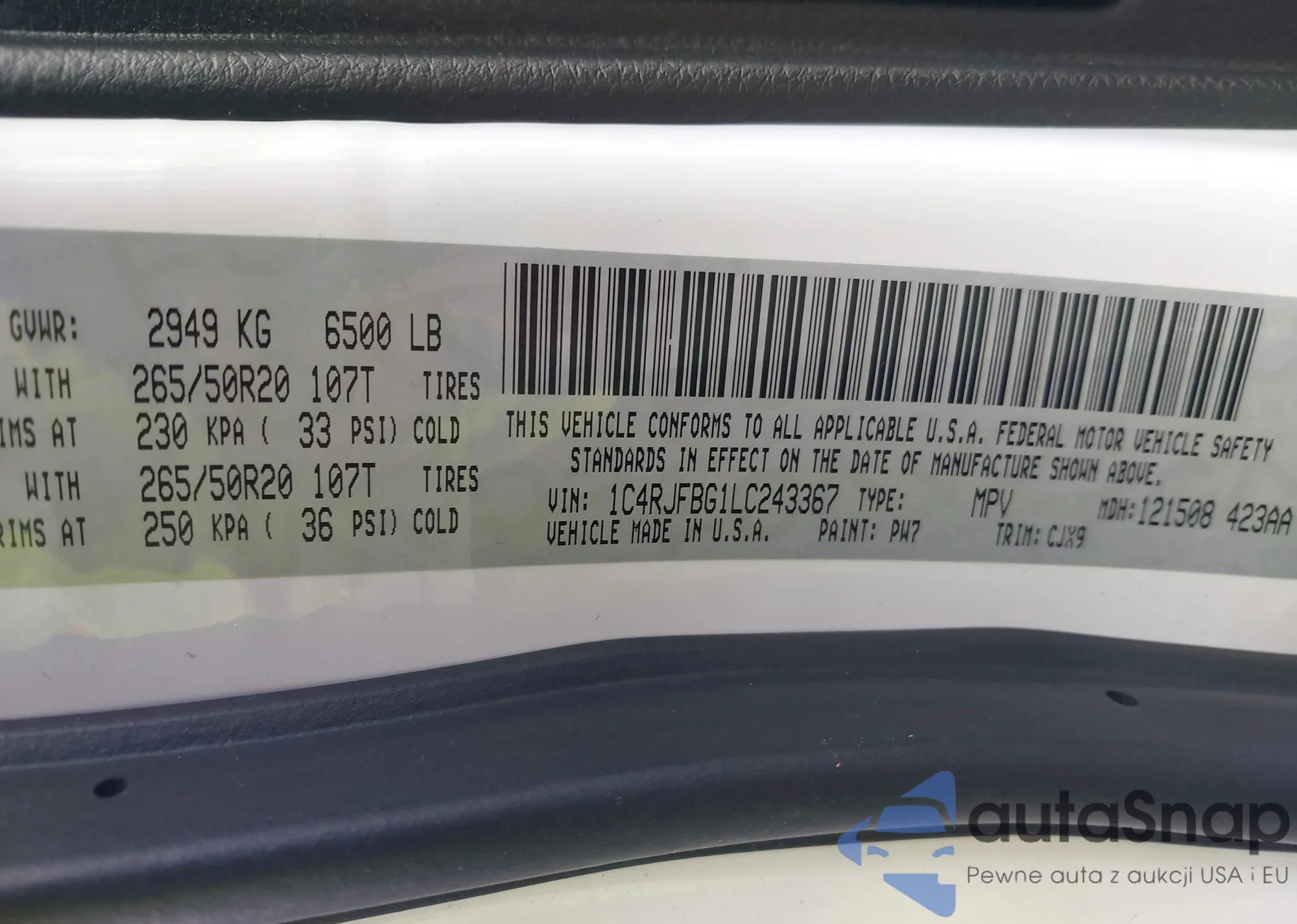 • VIN 1C4RJFBG1LC243367