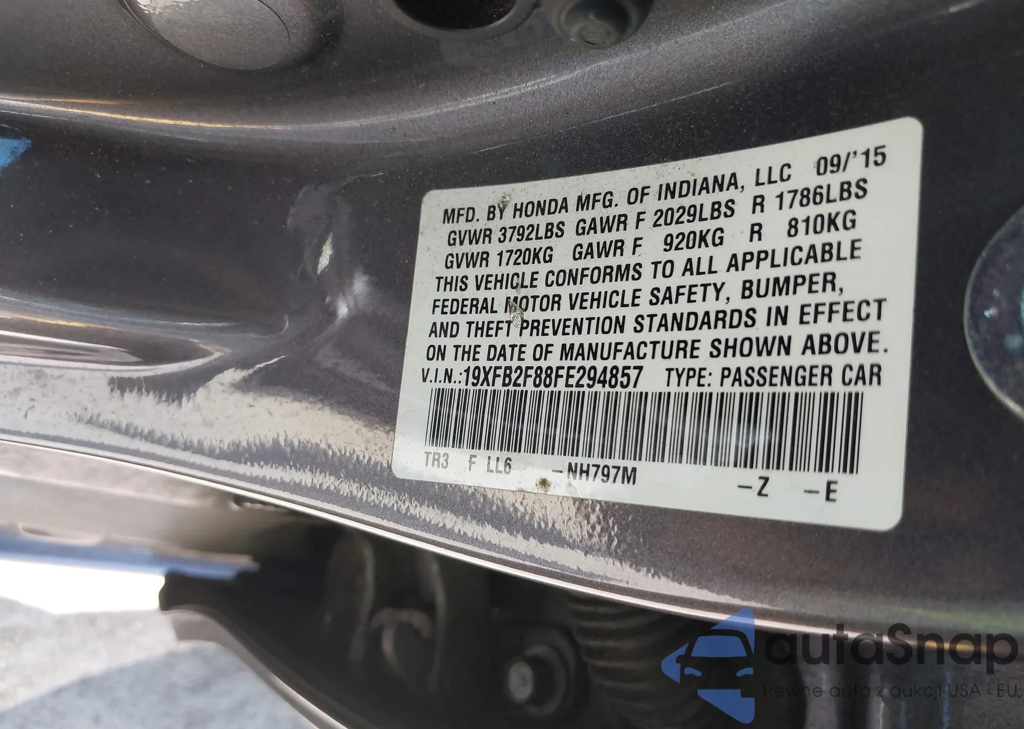 LOT: 43078418 VIN: 19XFB2F88FE294857