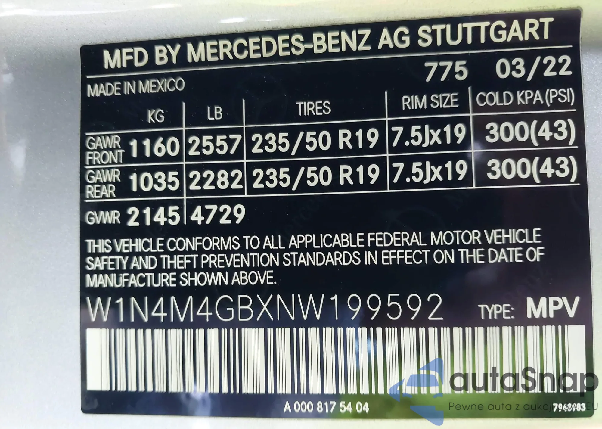 • VIN W1N4M4GBXNW199592