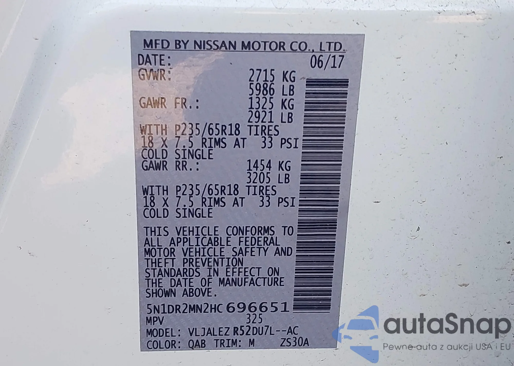 LOT: 43239312 VIN: 5N1DR2MN2HC696651