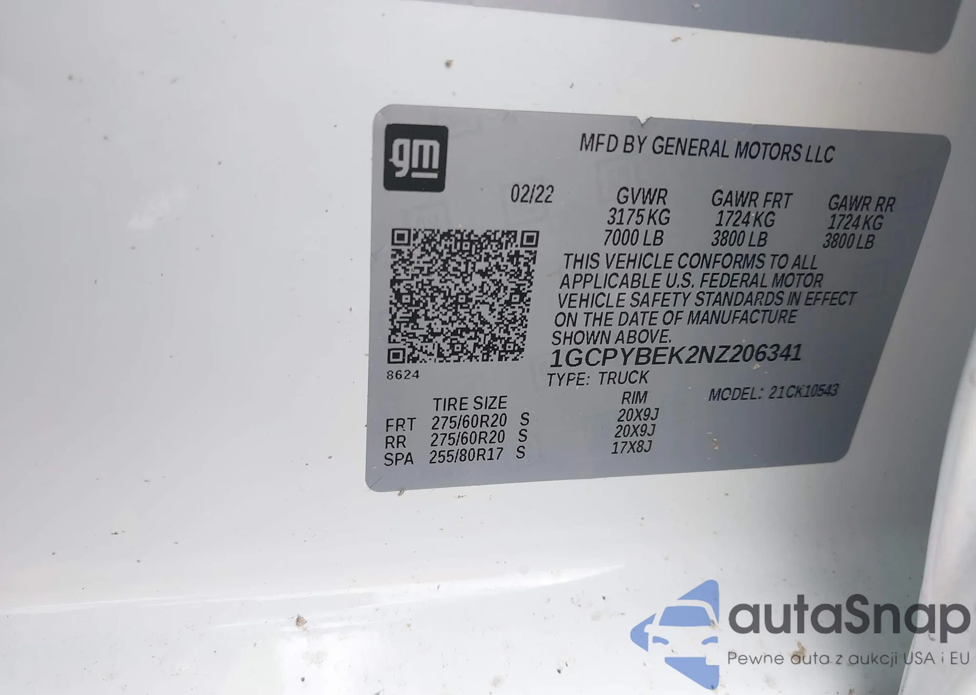 • VIN 1GCPYBEK2NZ206341