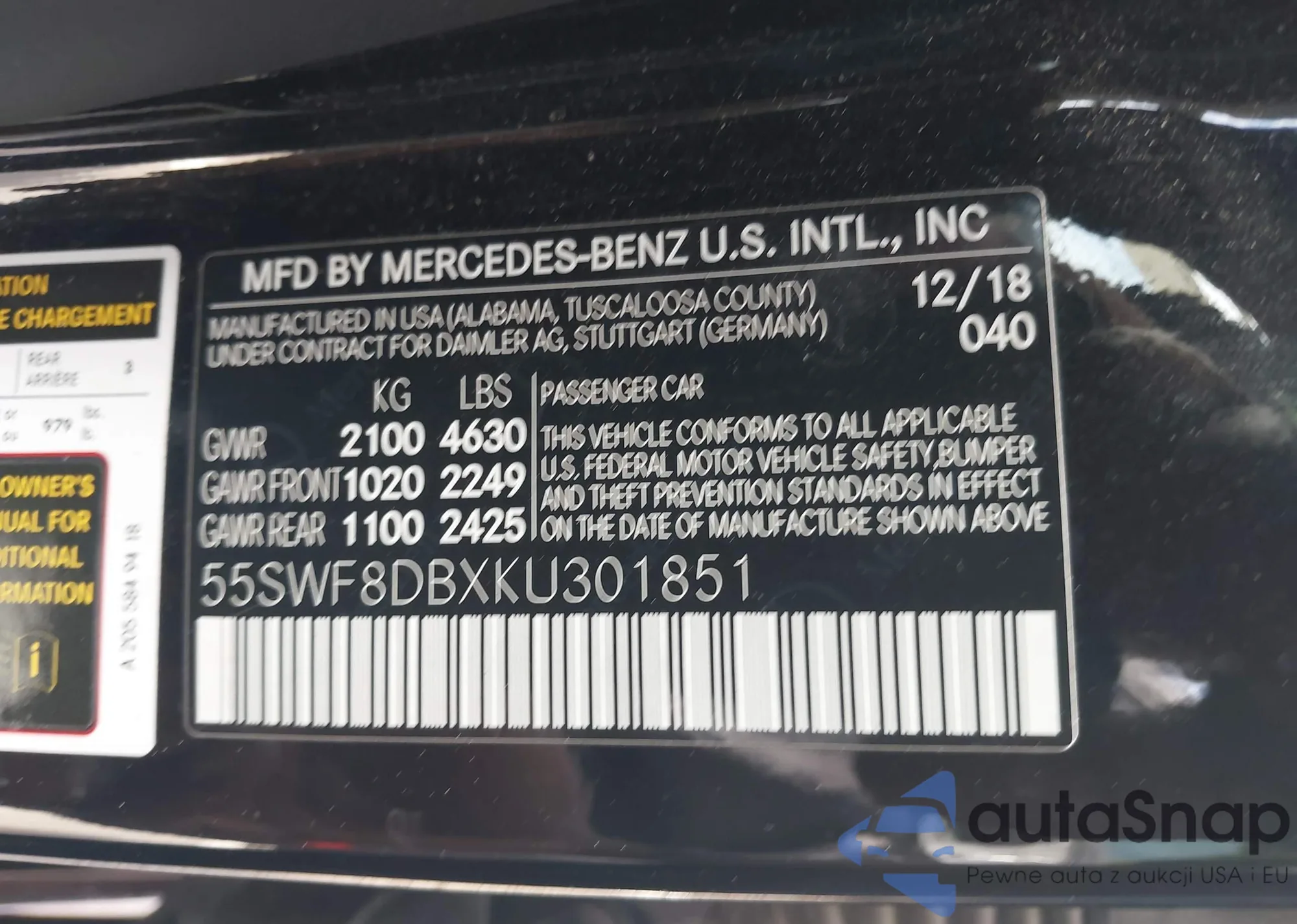 • VIN 55SWF8DBXKU301851
