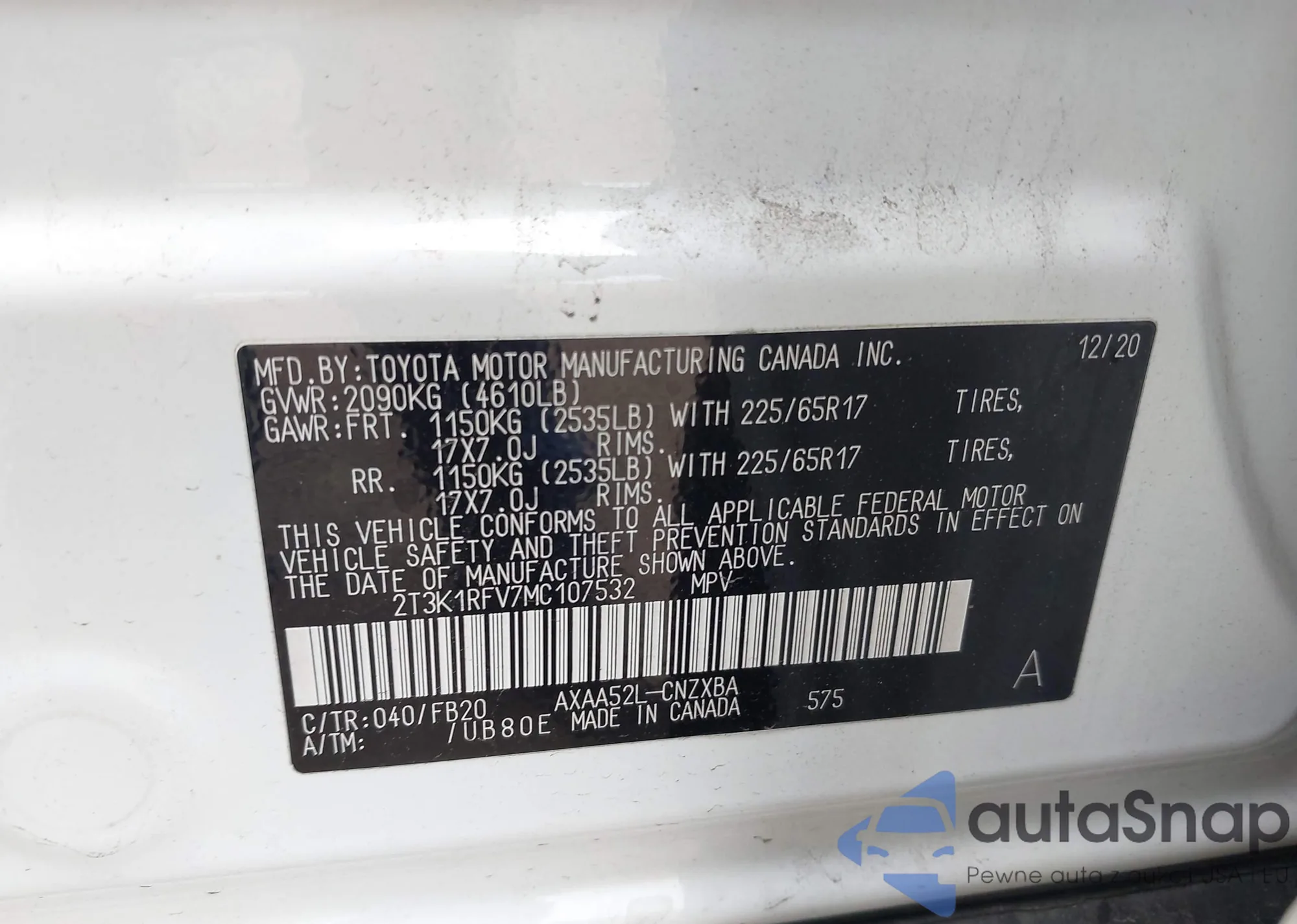 • VIN 2T3K1RFV7MC107532