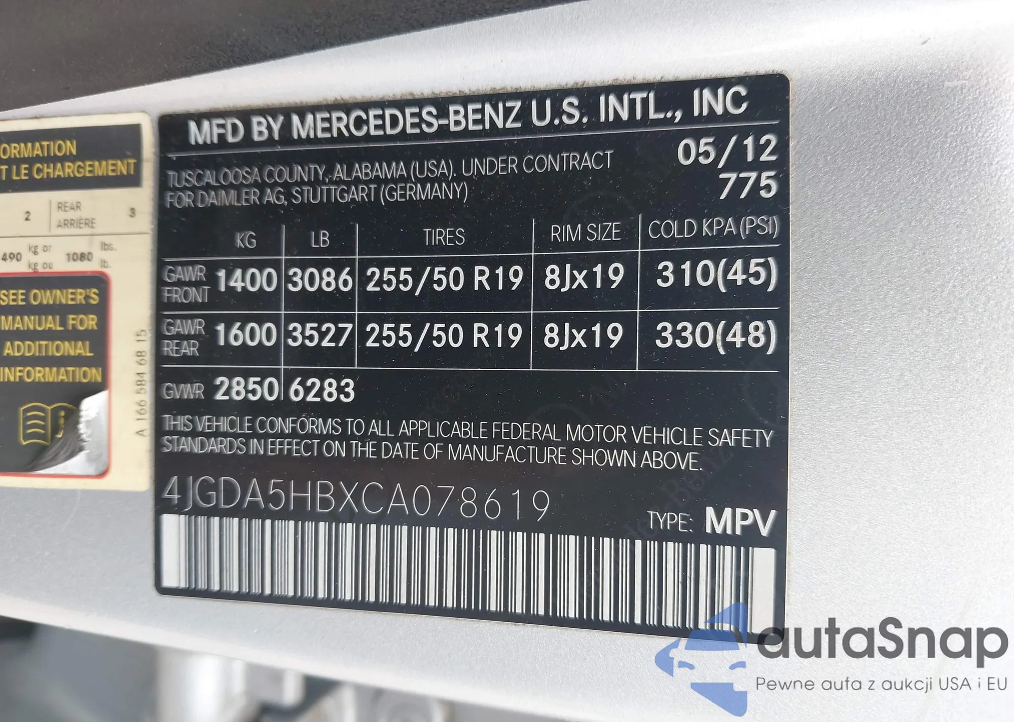 • VIN 4JGDA5HBXCA078619