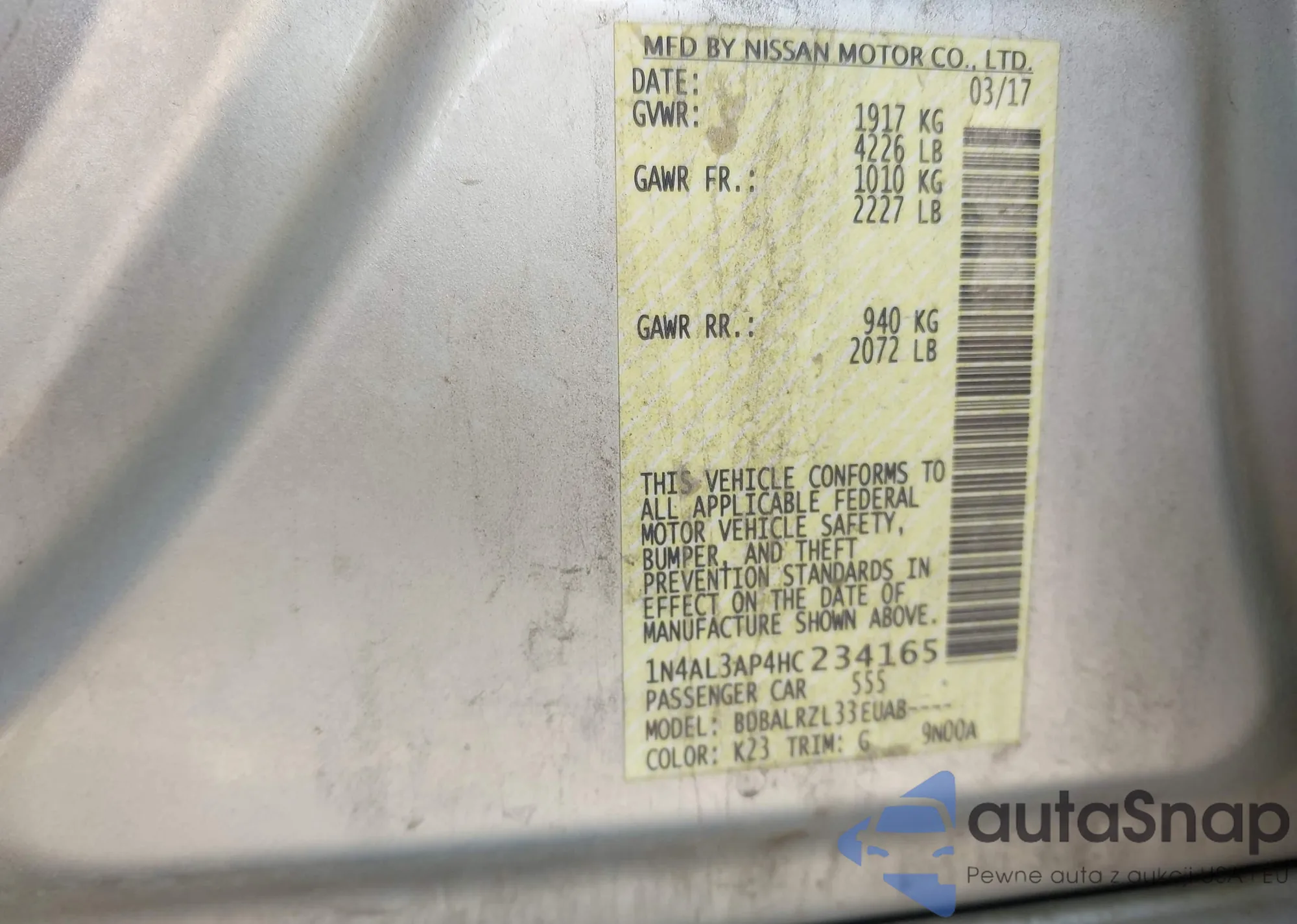 LOT: 43237718 VIN: 1N4AL3AP4HC234165