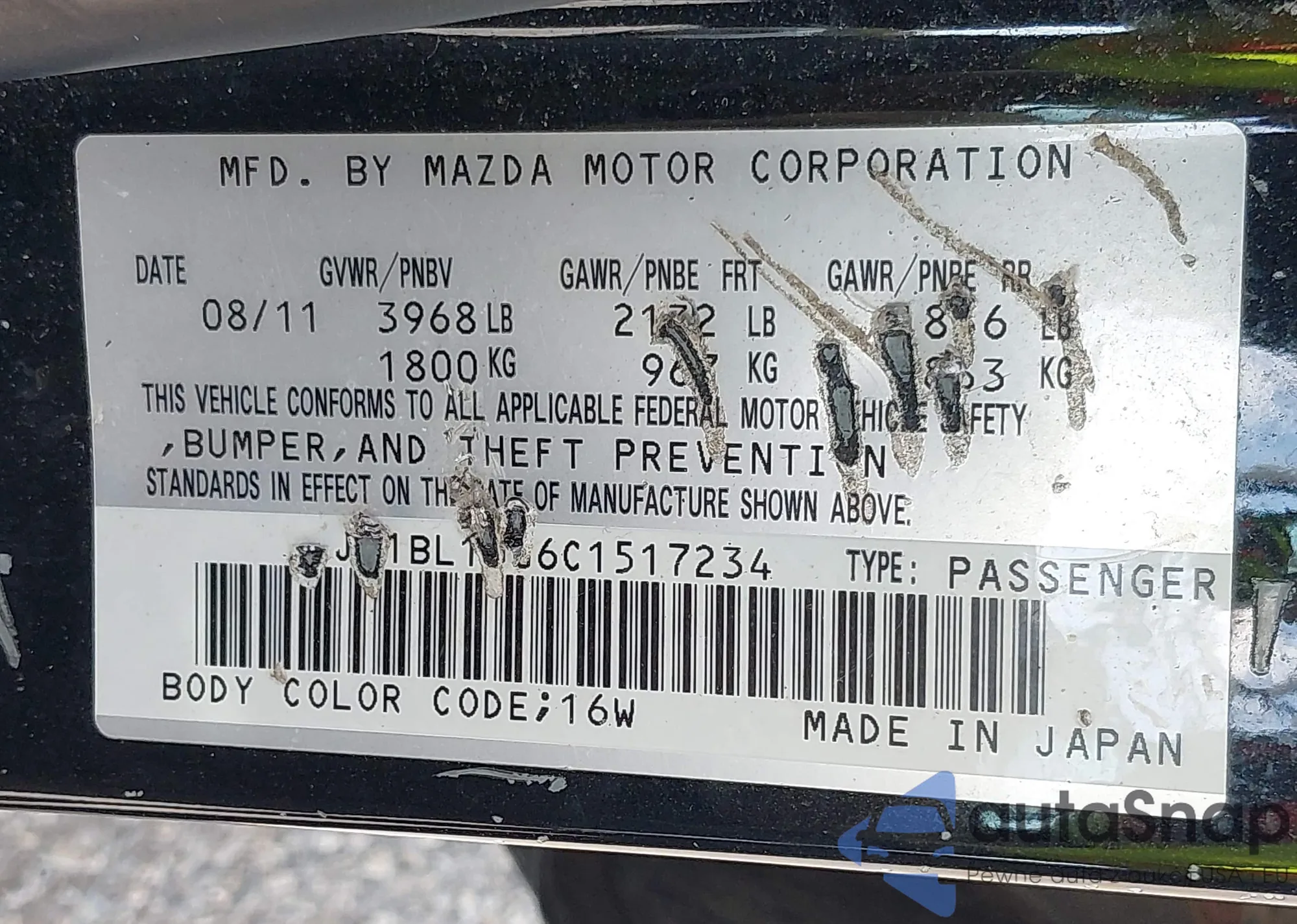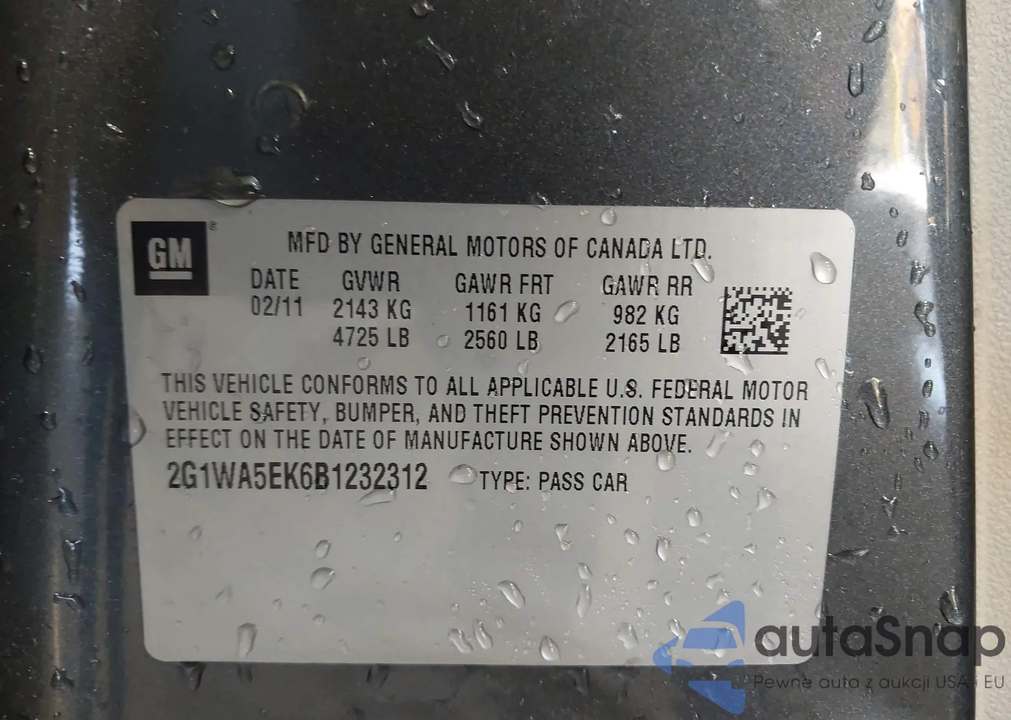 • VIN 2G1WA5EK6B1232312