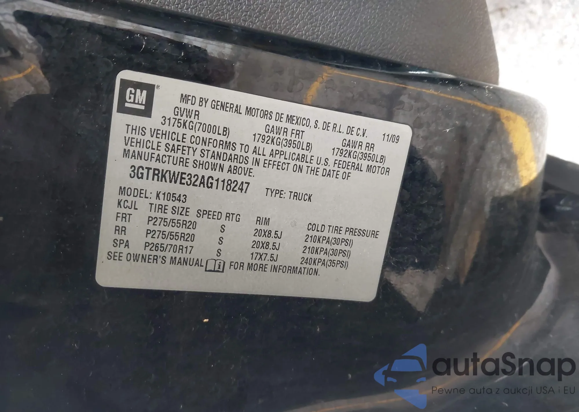 • VIN 1G6AX5SX7G0102321