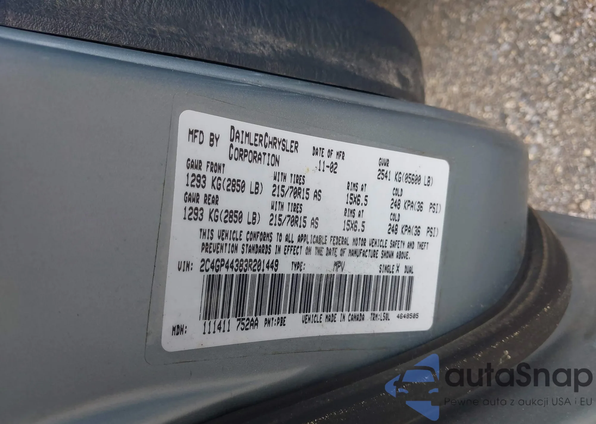 • VIN 2C4GP44383R201449