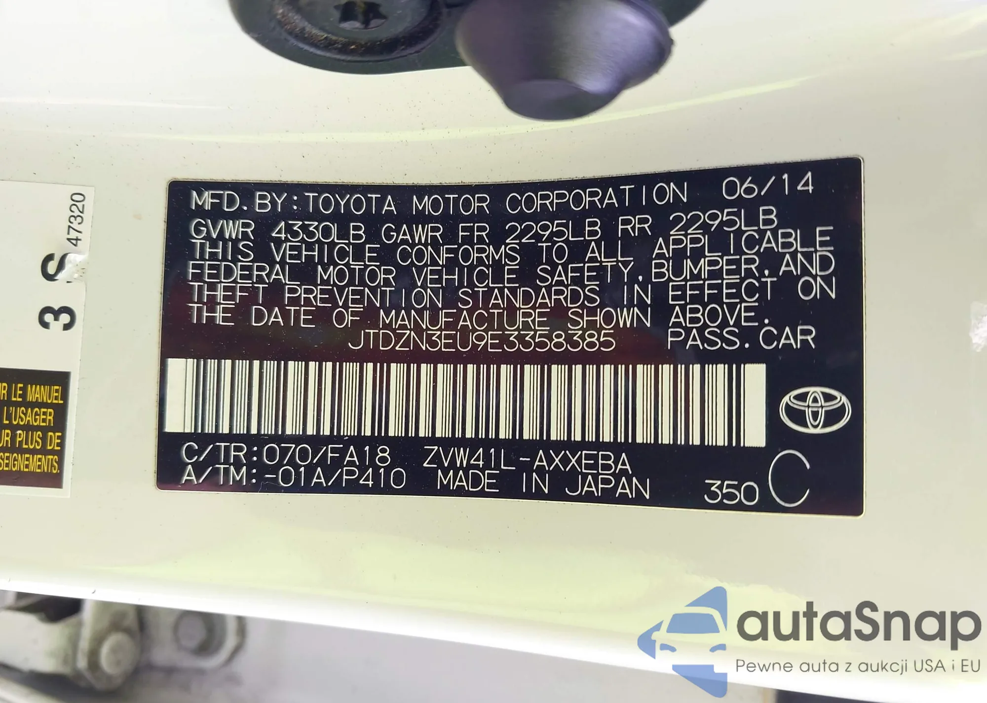 LOT: 43205686 VIN: JTDZN3EU9E3358385