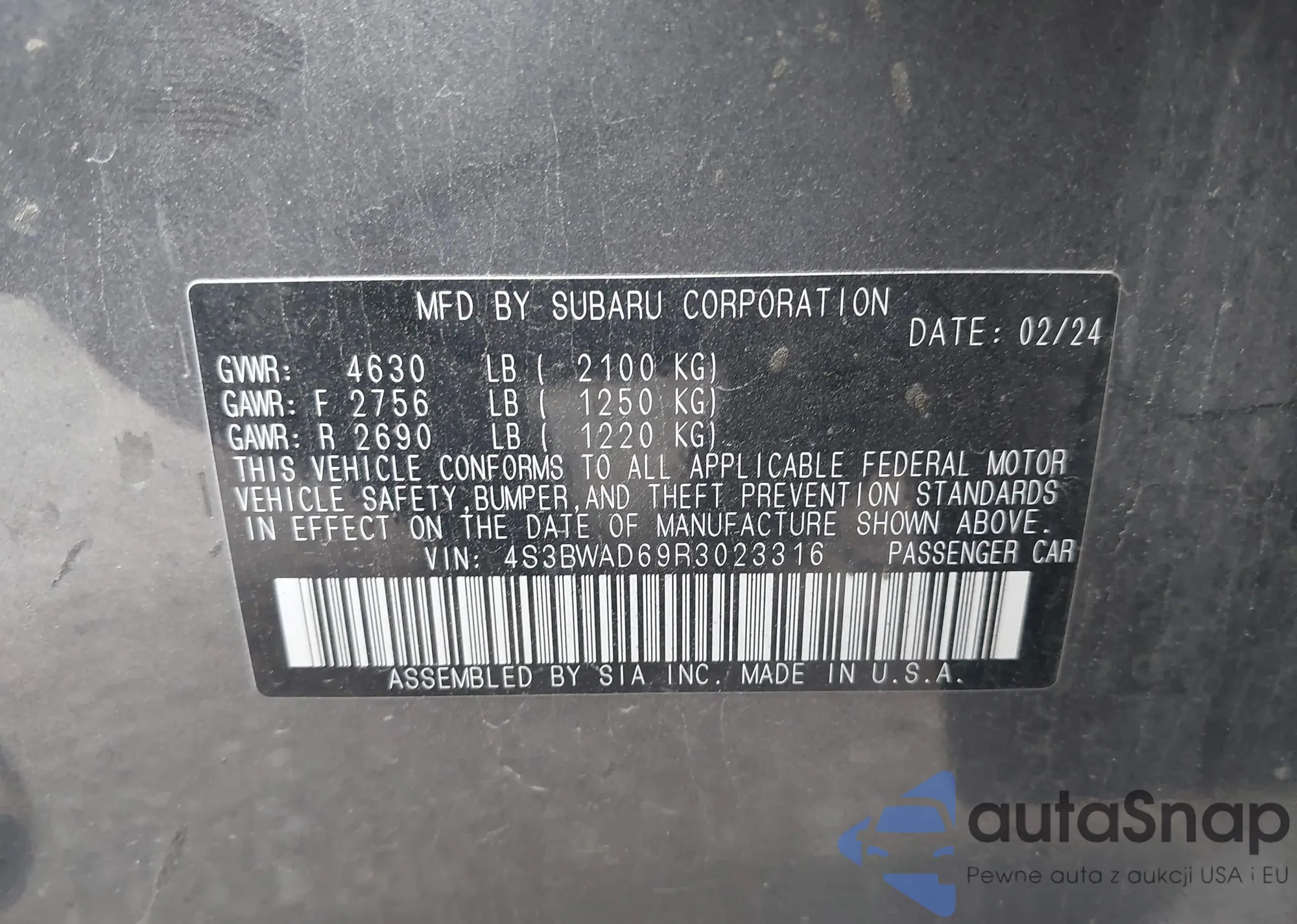 • VIN 4S3BWAD69R3023316