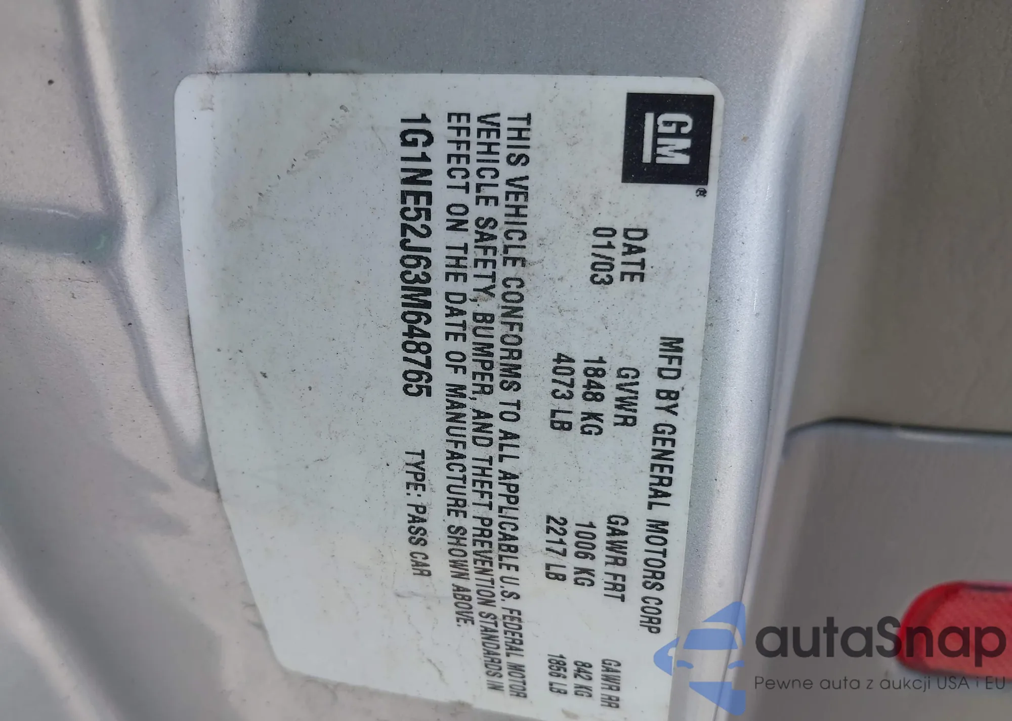 LOT: 43106391 VIN: 1G1NE52J63M648765