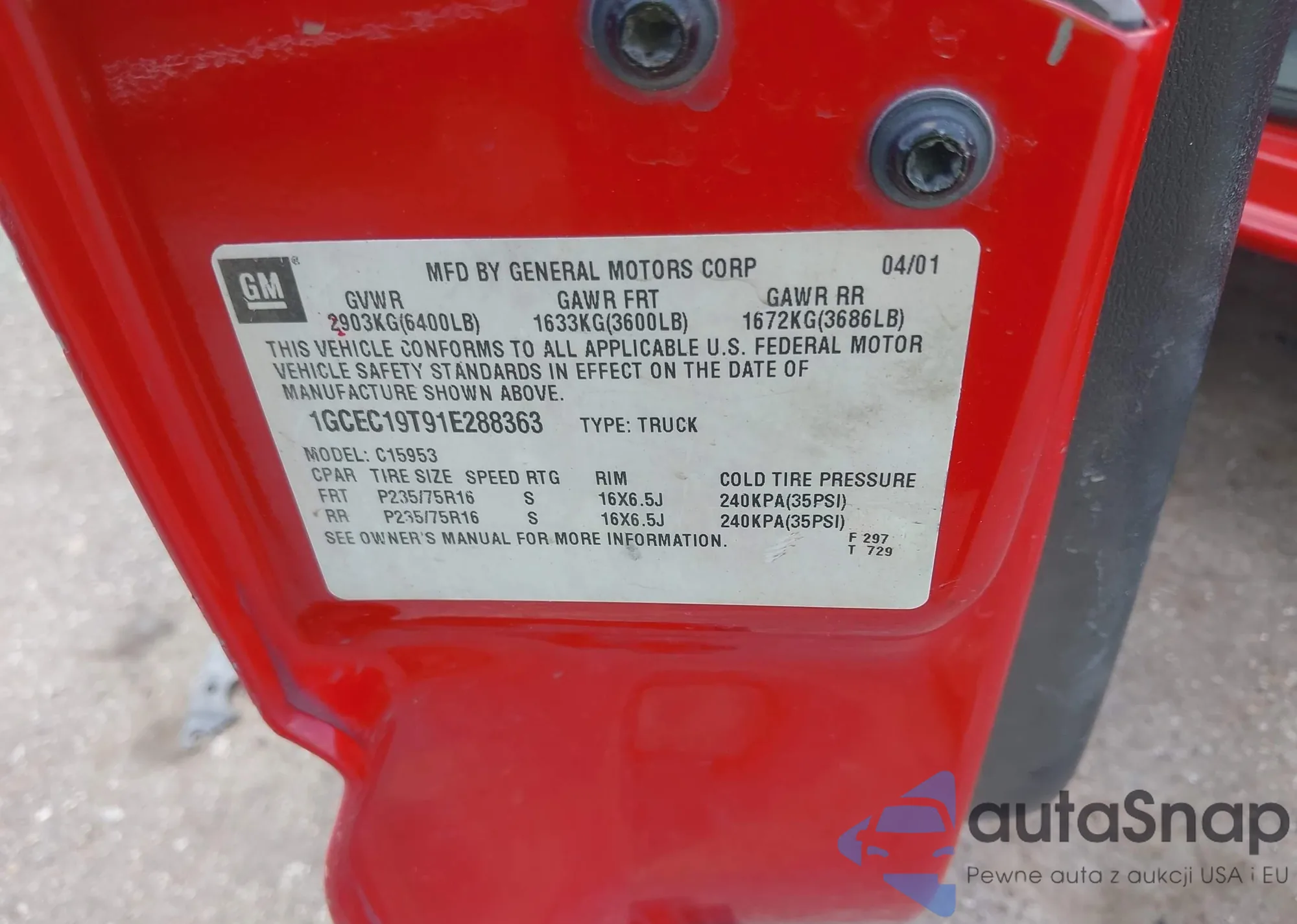 • VIN 1GCEC19T91E288363