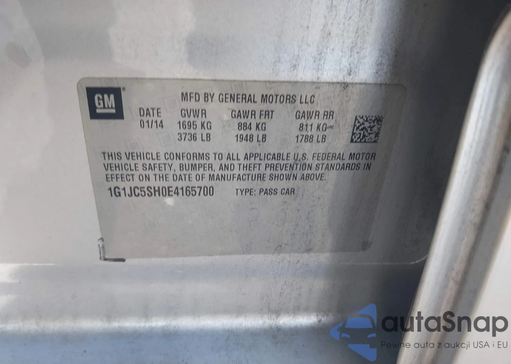 LOT: 42946831 VIN: 1G1JC5SH0E4165700