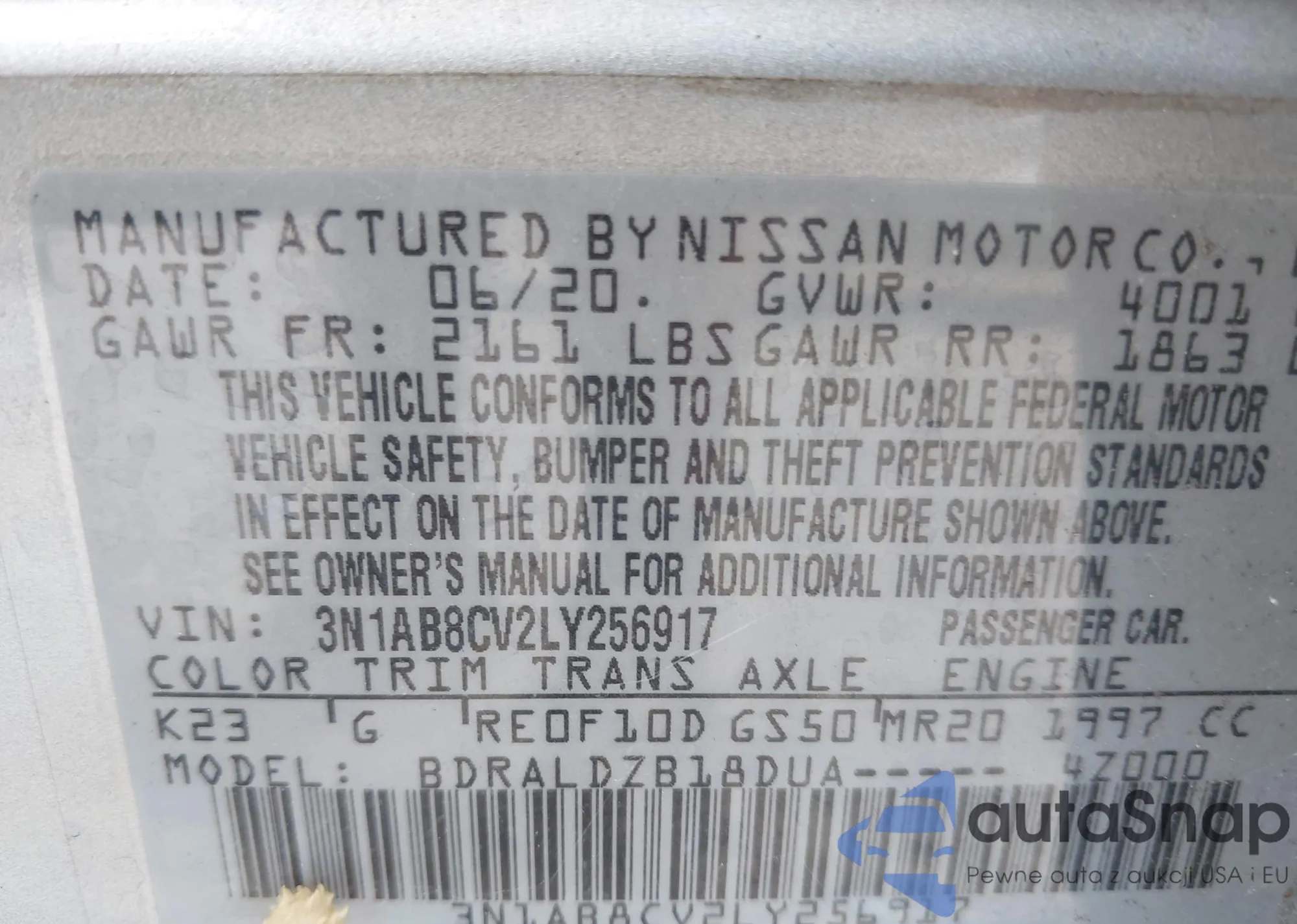 • VIN 3N1AB8CV2LY256917