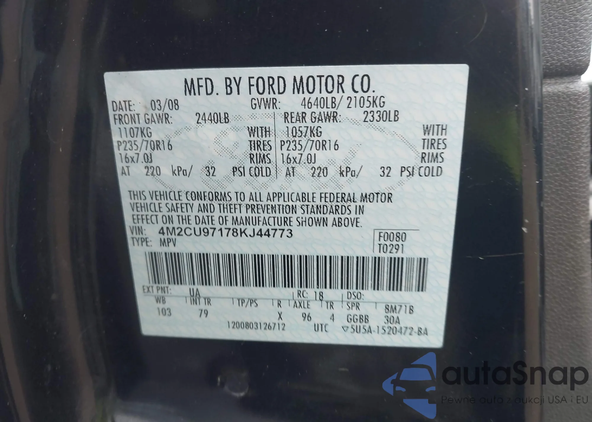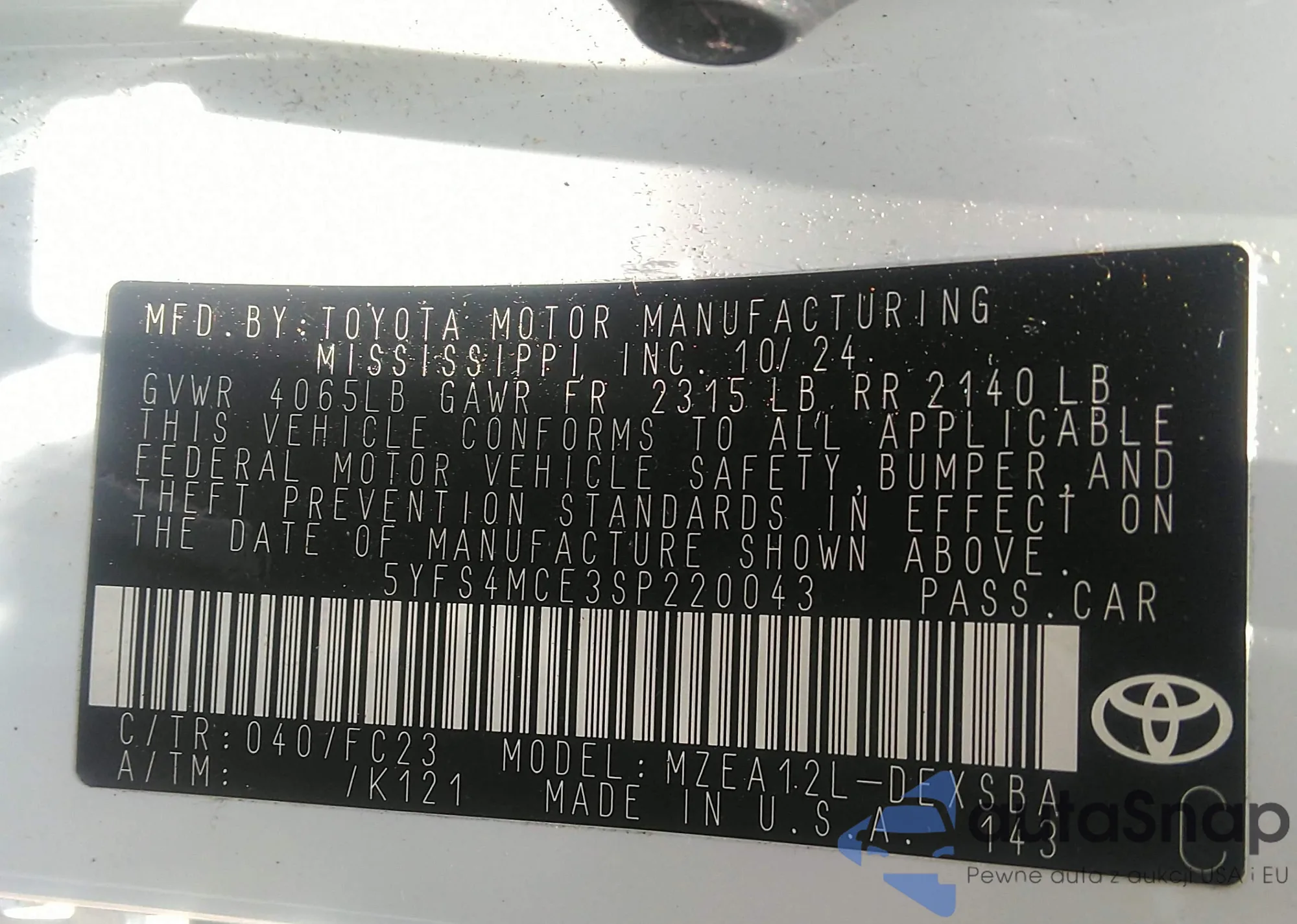 • VIN 5YFS4MCE3SP220043
