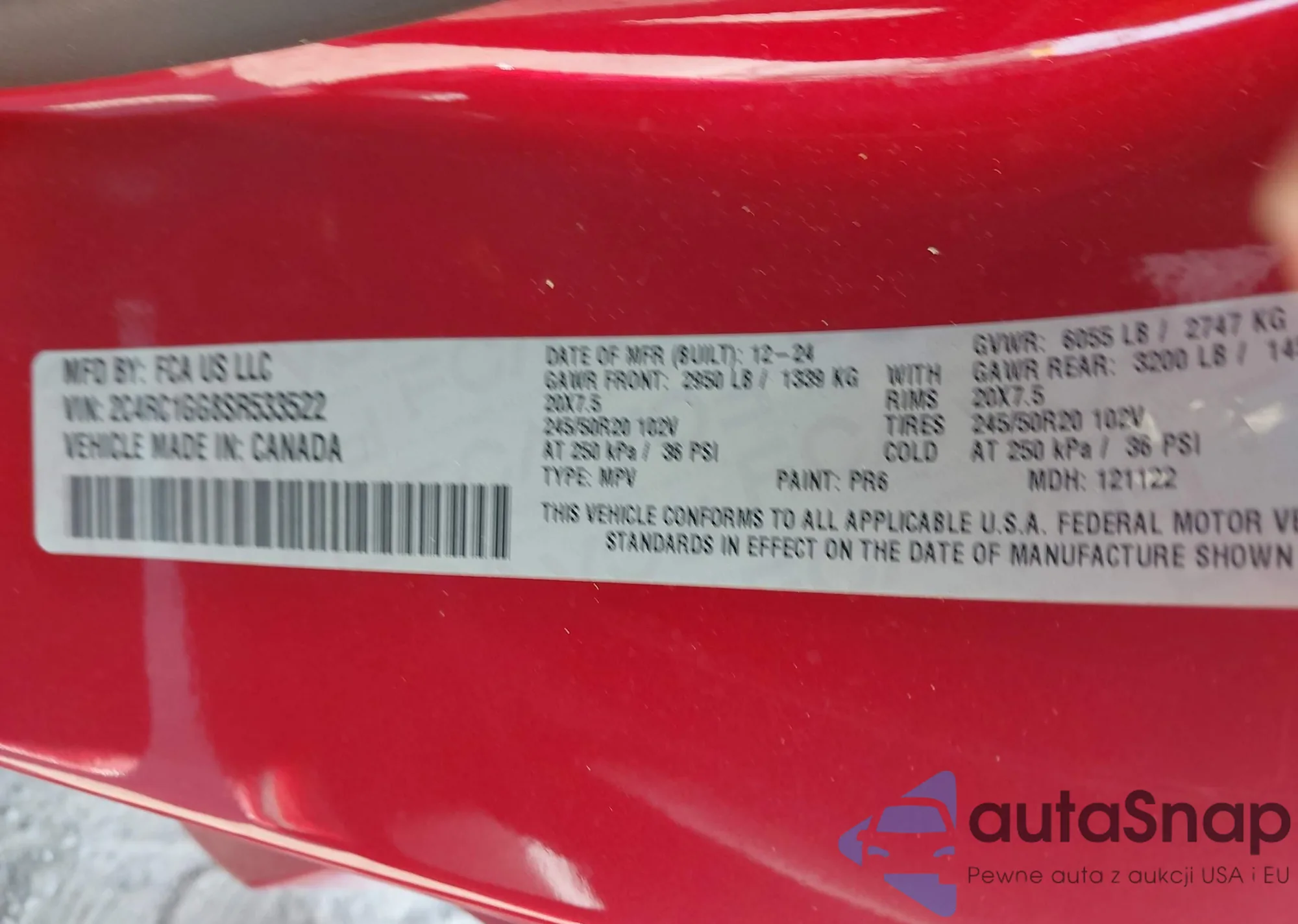 LOT: 43113579 VIN: 2C4RC1GG8SR533522