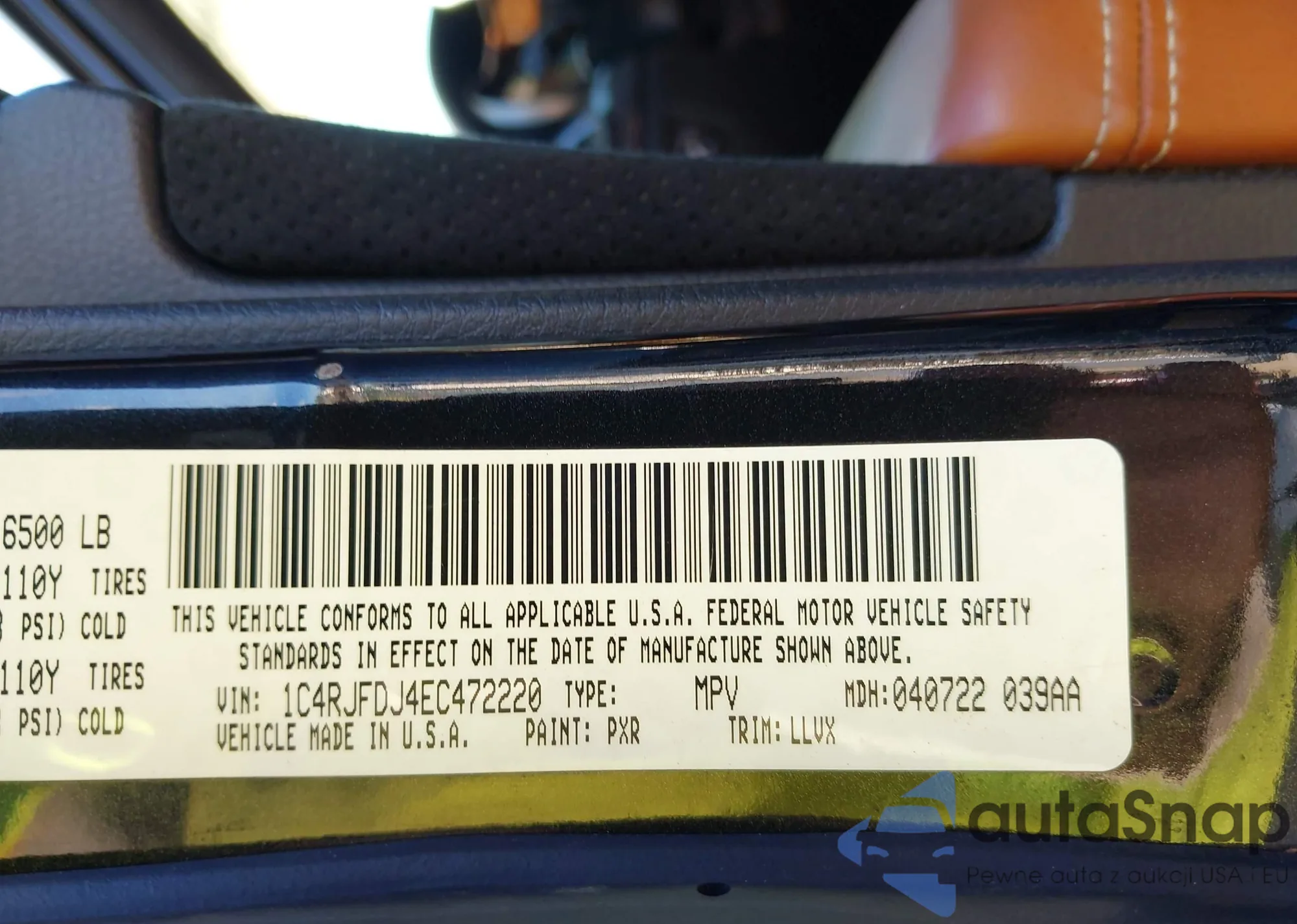 • VIN 1C4RJFDJ4EC472220