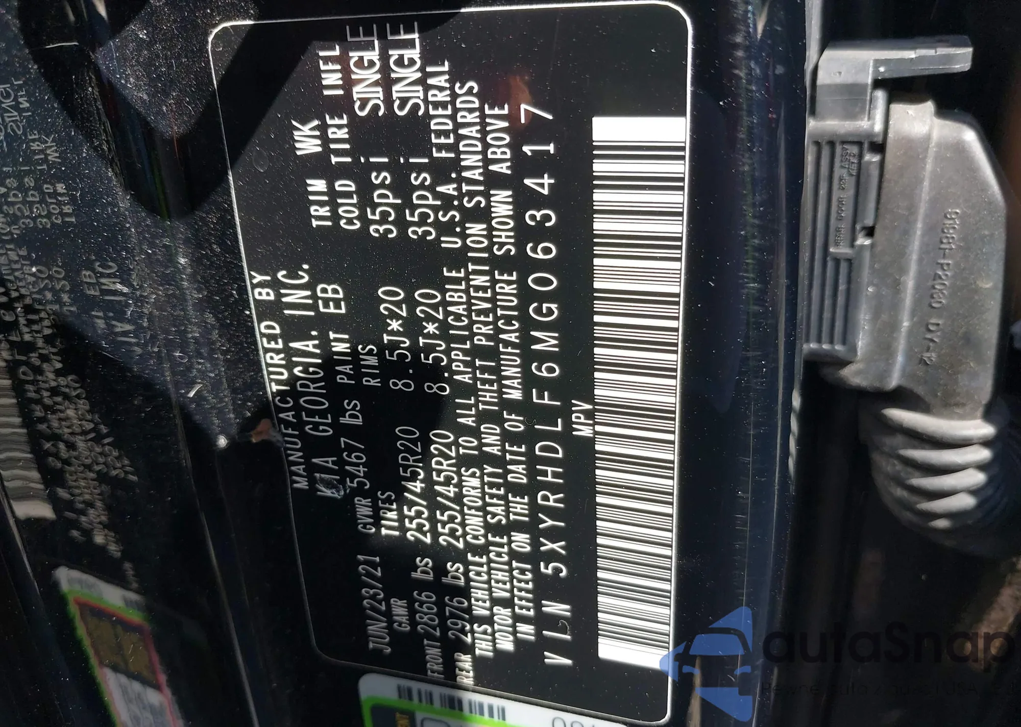 LOT: 42966134 VIN: 5XYRHDLF6MG063417