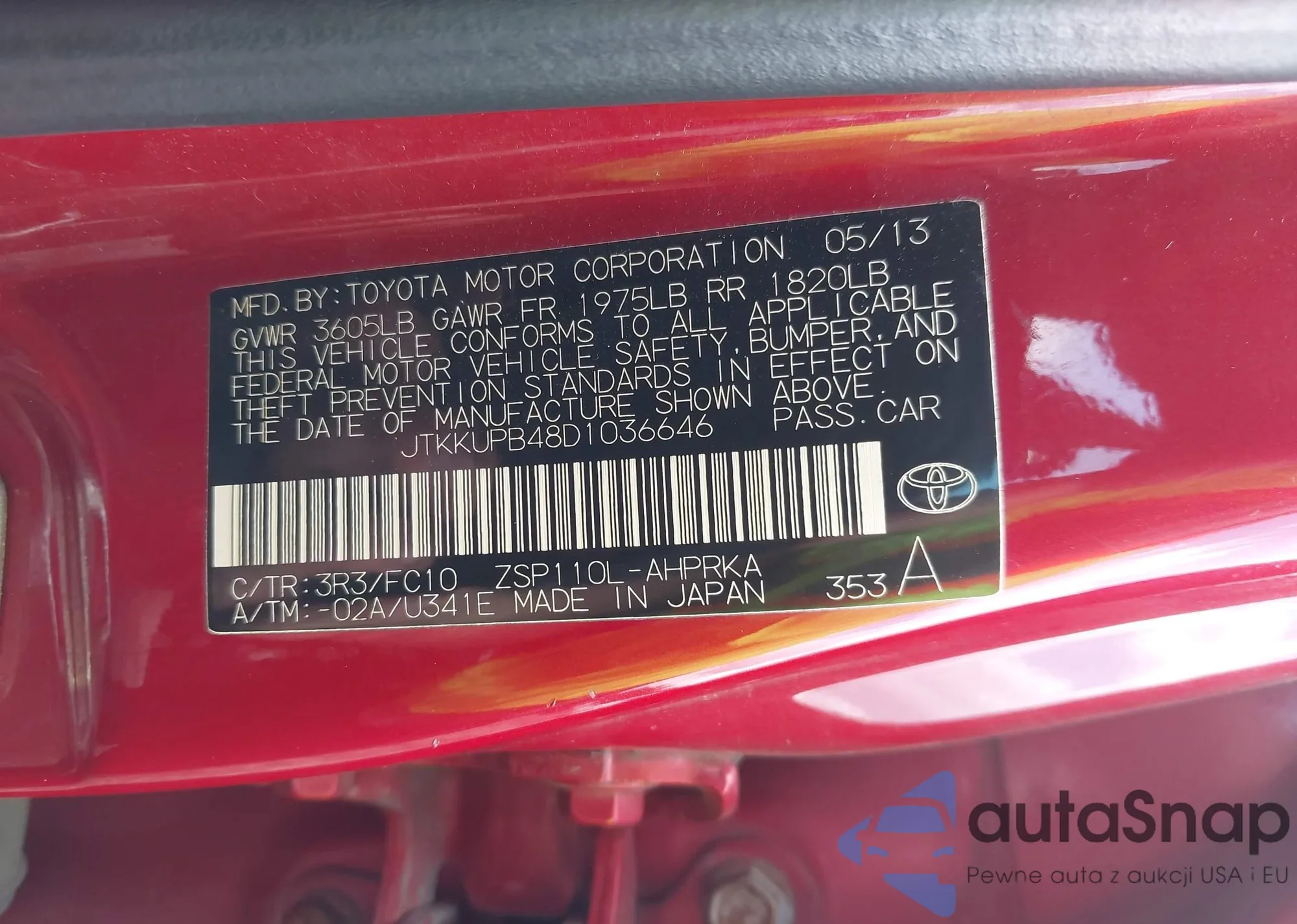 • VIN JTKKUPB48D1036646