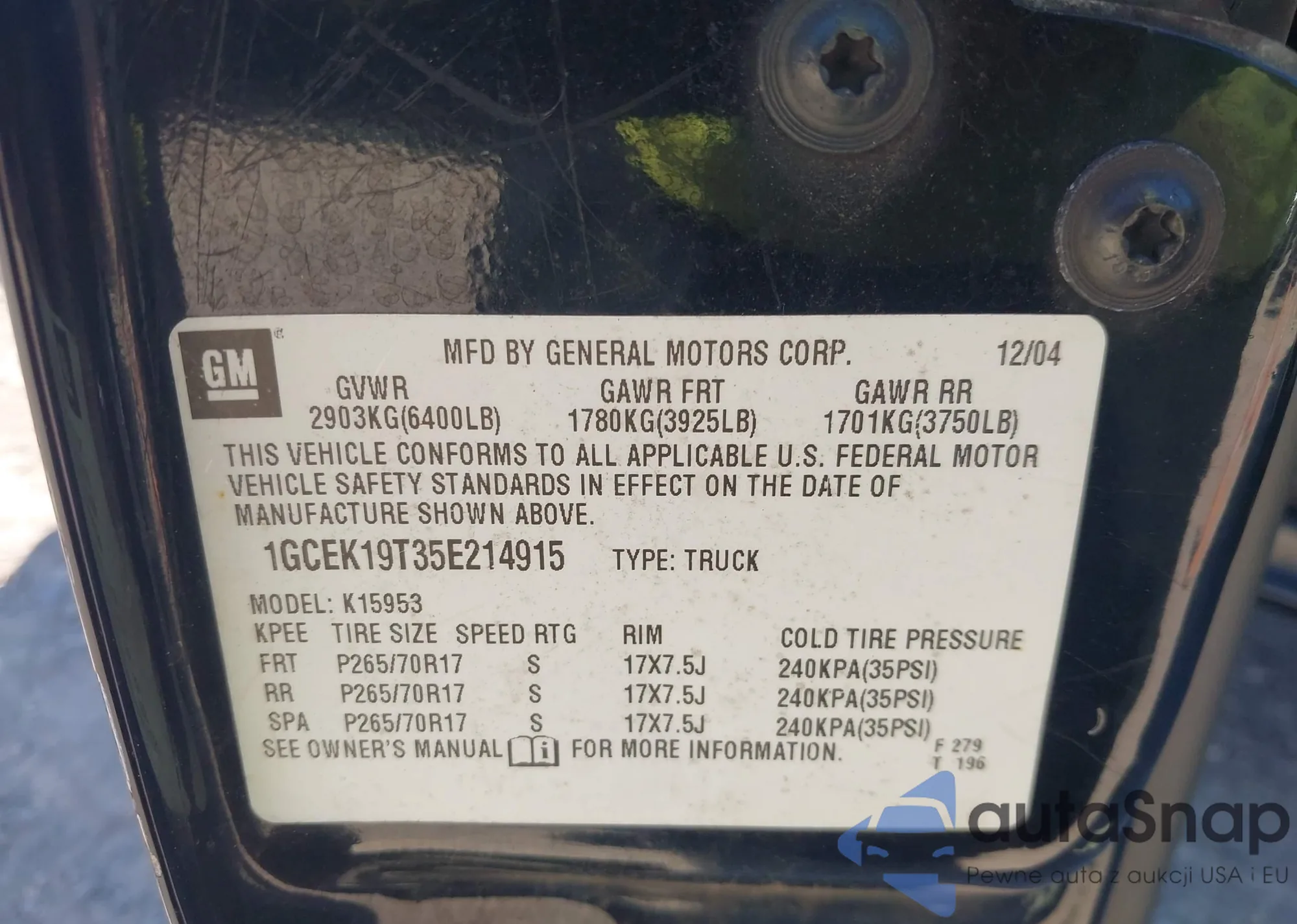 • VIN 1GCEK19T35E214915