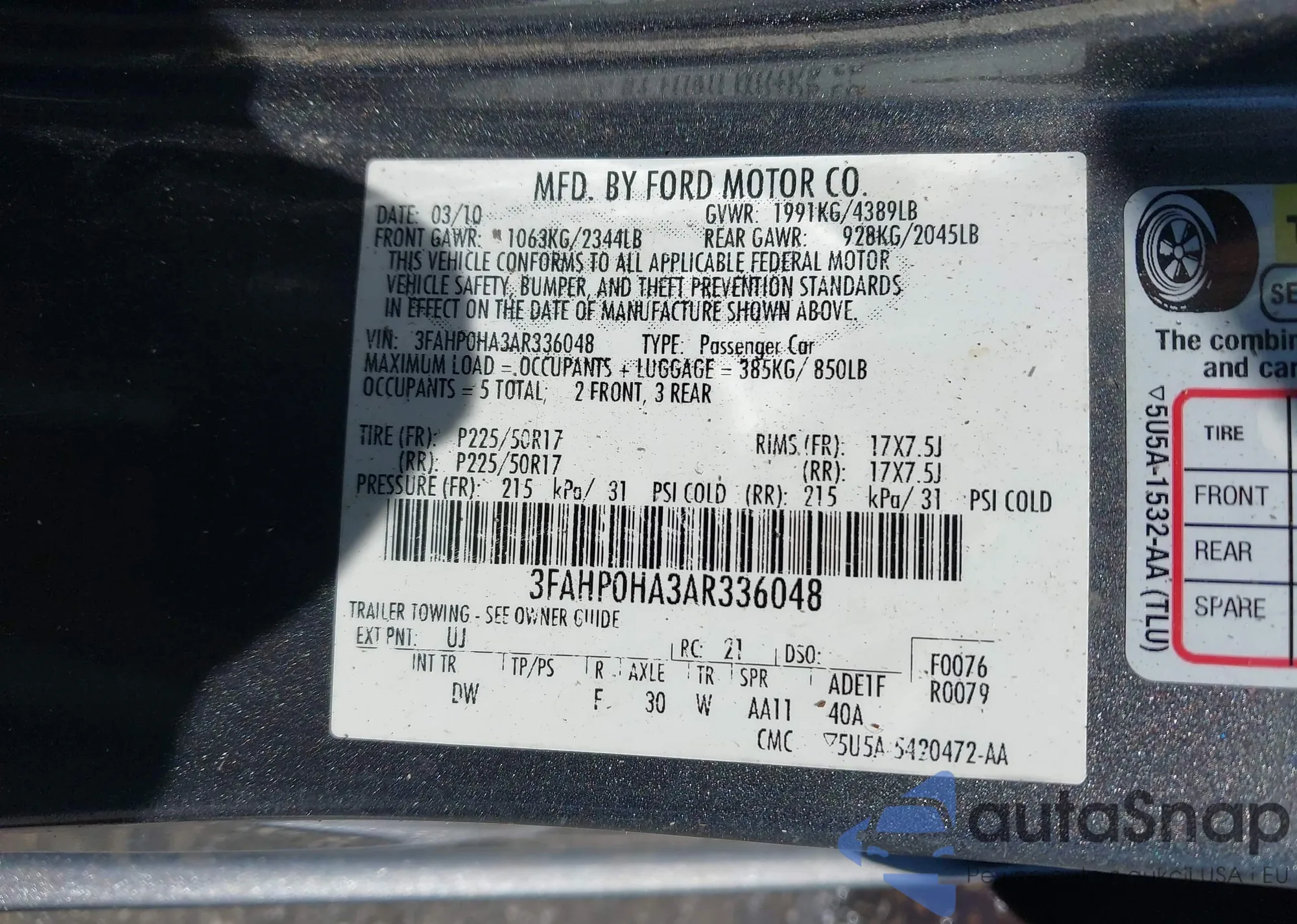 • VIN 3FAHP0HA3AR336048
