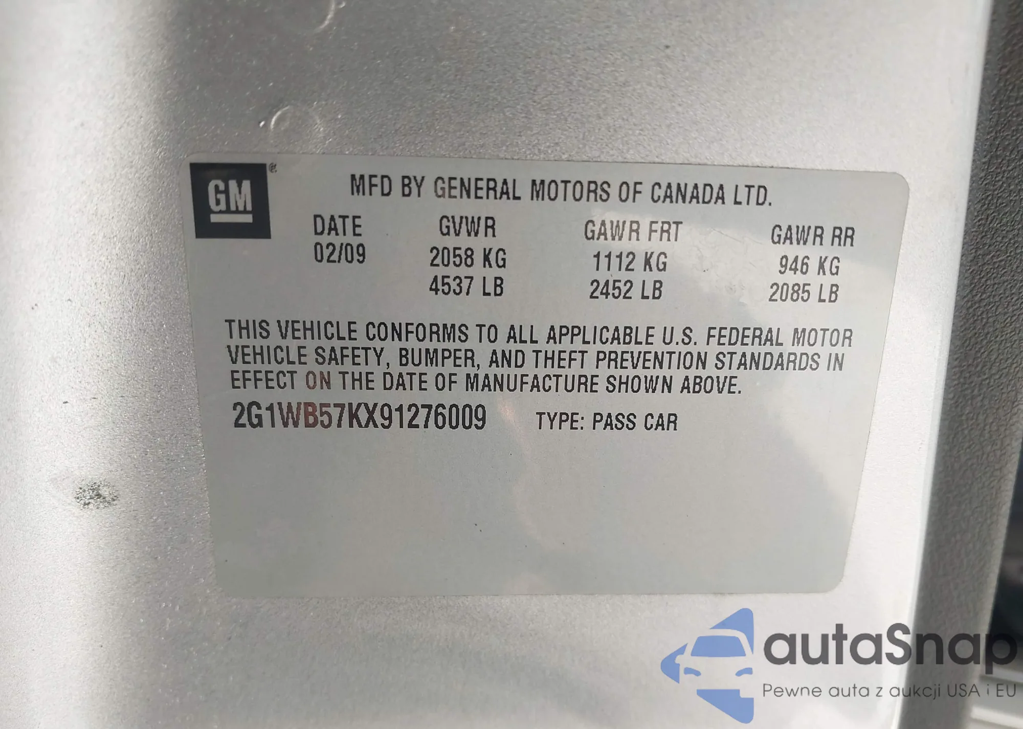 • VIN 2G1WB57KX91276009