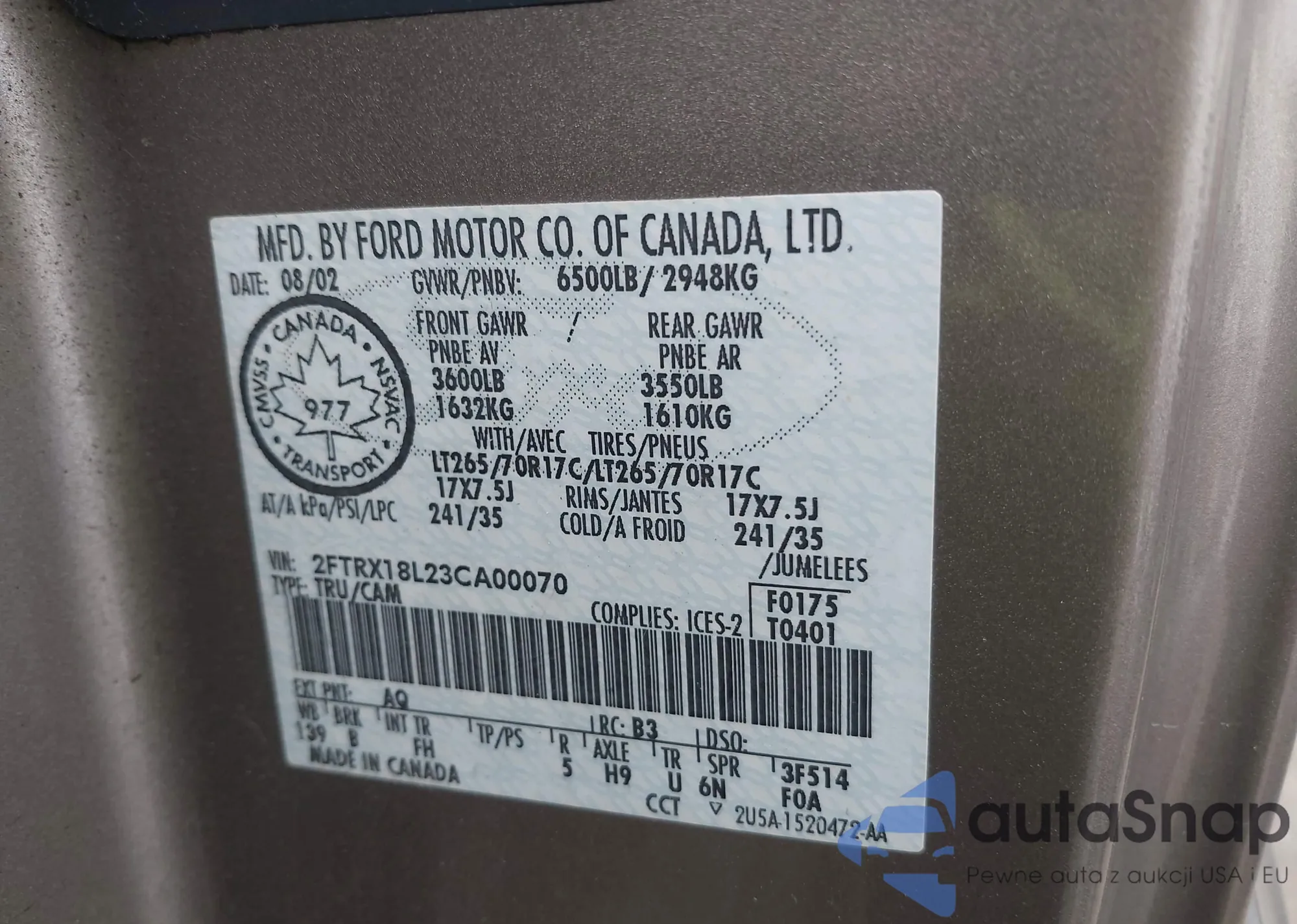 • VIN 3FAHP0JG2CR265295